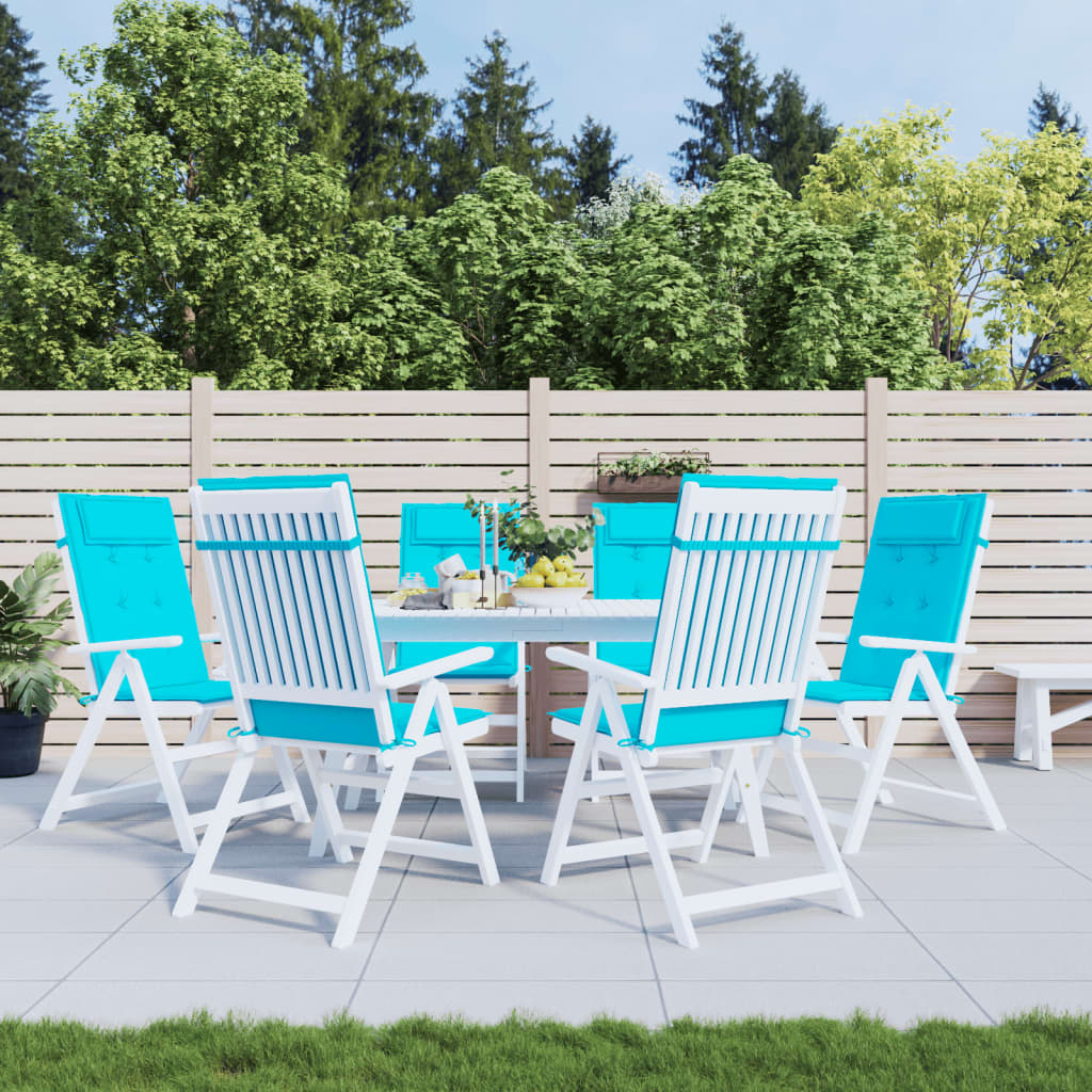 Verleihe deinem Außenbereich im Handumdrehen eine frische Note mit diesen komfortablen Hochlehner-Auflagen! Langlebiges Material: Oxford-Gewebe ist leicht, wasserabweisend und resistent gegen Schäden und Schmutz. Das verwendete Garn macht das Gewebe haltbar und atmungsaktiv. Außerdem ist es von Natur aus faltenbeständig.Weiche Polsterung: Die Auflage ist mit Schaumstofffasern gefüllt, die für einen besonders weichen und optimalen Sitzkomfort sorgen. Das Stuhlkissen nimmt nach jedem Gebrauch wieder seine ursprüngliche Form an.Vielfältig einsetzbar: Das Kissen eignet sich für den Einsatz im Freien, z. B. für Gartenmöbel, aber auch in Innenräumen als Sitzkissen für Hocker und Ottomanen. Außerdem ist es eine schöne Dekoration, die deinem Zuhause einen frischen Look verleiht.Rutschfestes Design: Mit Hilfe der praktischen Schnüre und des Gummibandes an der Rückseite lässt sich das Kissen leicht an Möbeln befestigen und bleibt ordentlich und sicher an seinem Platz. Gut zu wissen:Das Produkt wird unter Vakuum verpackt und braucht daher einige Zeit, um sich auszudehnen und seine ursprüngliche Form wieder anzunehmen.