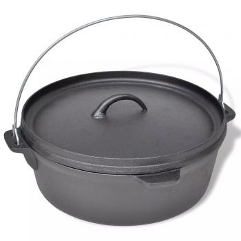 Dieser holländische Ofen, mit einer Füllmenge von 5,6 l, ist ein ideales Modell für Einsteiger und Profis. Ein holländischer Ofen kann zur Zubereitung von Aufläufen, Eintöpfen und Braten verwendet werden. Dieses Modell wird mit einer schwarzen Tragetasche, einem Deckel mit erhöhtem Rand, einem Henkel und einem Stand geliefert. Aus qualitativ hochwertigen Materialien hergestellt, ist dieser schwere holländische Ofen sehr strapazierfähig. Die mitgelieferte Tragetasche hält den Ofen beim Transport sauber. Dieser holländische Ofen ist vielseitig Einsetzbar, egal ob zu Hause oder auf Ausflügen. Er eignet sich hervorragend zum kochen, backen und frittieren.