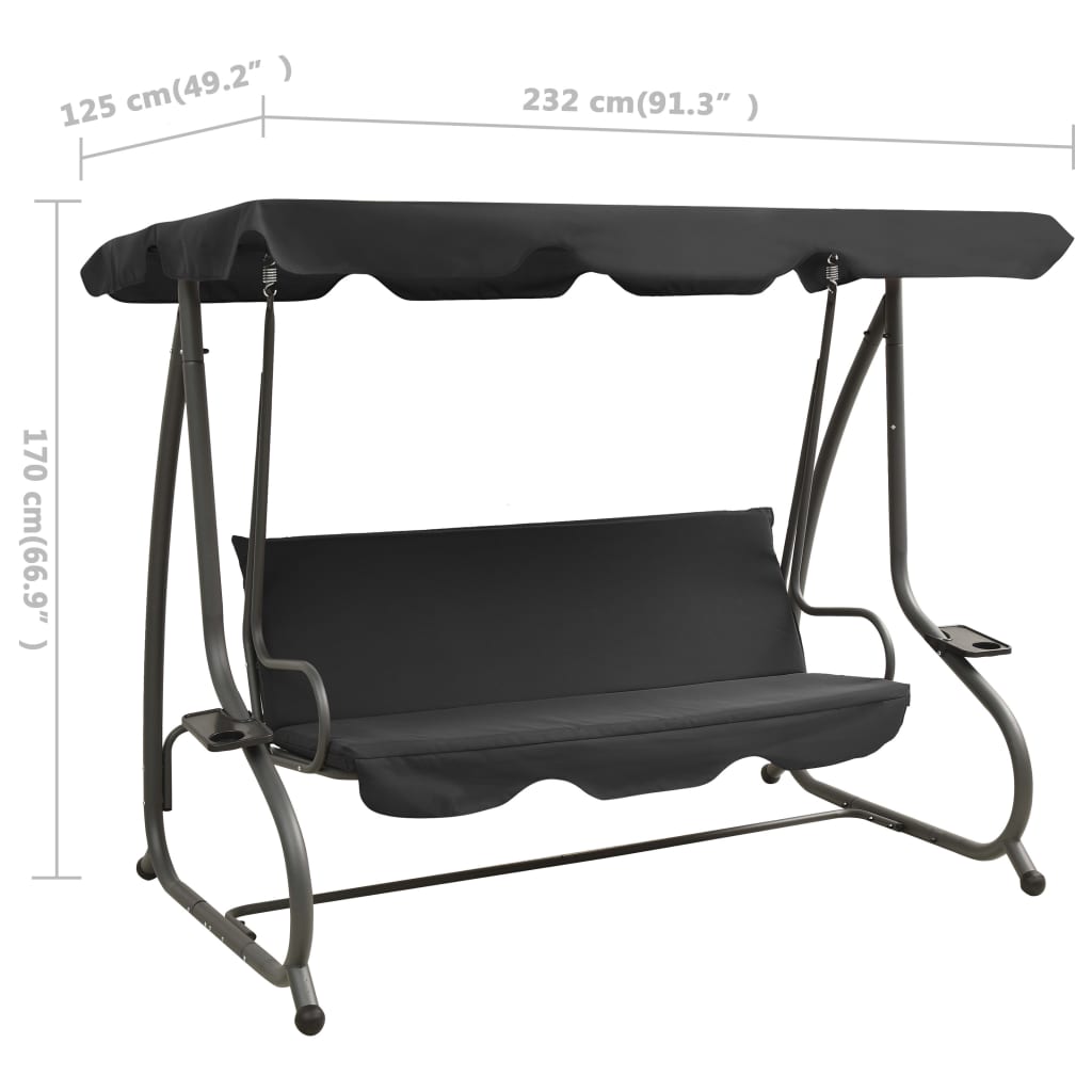Diese Hollywoodschaukel ist mit einem Sonnendach ausgestattet und so konzipiert, dass sie ein Blickfang Ihres Gartens oder eines sonstigen Außenbereichs wird. Mit dieser Gartenschaukel schaffen Sie sich einen perfekten Rückzugsort, an dem Sie sich entspannen oder nette Gespräche mit Freunden im Garten, auf dem Balkon oder der Terrasse führen können. Diese Gartenschaukel weist einen pulverbeschichteten Stahlrahmen auf, wodurch sie sehr strapazierfähig und langlebig ist. Die weichen Sitz- und Rückenpolster aus Polyester bieten eine äußerst komfortable Sitzgelegenheit. Die 2-Personen-Hollywoodschaukel spendet angenehmen Schatten mit ihrem großen Sonnendach. Sie werden es lieben, in der Sommerbrise hin und her zu schaukeln.