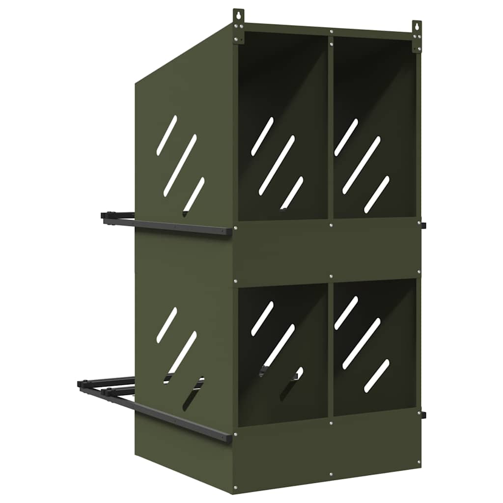 Dieser Hühner-Nistkasten bietet deinen Hühnern ausreichend und geordneten Platz, um bequem ihre Eier zu legen. Robust und langlebig: Der Eierkarton ist aus kaltgewalzten und verzinkten Blechen gefertigt, die langlebig, robust und witterungsbeständig sind. Außerdem hält es die geschlüpften Eier trocken und sauber und sorgt so für ein gesundes Umfeld für die Hühner und eine bessere Eierproduktion.Schräges Dach: Das schräge Dach verhindert, dass die Hennen auf dem Nistkasten sitzen und dass sich an Regentagen Wasser ansammelt.Sitzstangen-Eingangsdesign: Die integrierte Sitzstange erleichtert den Hennen das Betreten und Verlassen des Nistkastens und fördert die Benutzerfreundlichkeit.Gute Atmungsaktivität: Die Belüftungslöcher auf beiden Seiten des Kastens sorgen für eine gute Luftzirkulation und tragen dazu bei, den Nistbereich trocken und komfortabel zu halten und eine gesunde Umgebung für deine Hühner zu gewährleisten.Einfach zu benutzen: Dank des abnehmbaren und geneigten Bodens und der glatten Oberfläche ist dieser Hühner-Nistkasten leicht zu reinigen und erfordert weniger Pflege. Außerdem ist die Box mit praktischen Löchern versehen, so dass sie je nach Bedarf einfach an die Wand gehängt oder auf den Boden gestellt werden kann. Gut zu wissen:Bitte trage bei der Montage Handschuhe (nicht im Lieferumfang enthalten), um Kratzer zu vermeiden.
