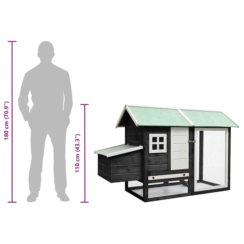 Dieser hochwertige Stall aus Holz bietet einen gemütlichen und komfortablen Platz für Kleintiere, insbesondere Hühner. Die Konstruktion mit Maschendraht ermöglicht Ihnen, die Hühner im Auge zu behalten und sorgt für genügend Frischluft. Der Hühnerstall ist mit einem hochwertigen Holzrahmen gebaut, der jahrelang hält. Während das grüne Dach den Regen abhält, wird der gemütliche Stall gleichzeitig zum perfekten Schlafplatz. Eine leicht begehbare Rampe führt vom unteren Erdgeschoss in das Obergeschoss. Eine ausziehbare Schublade erleichtert die Reinigung. Die Türen schließen leicht und können mittels Schieberiegel verschlossen werden. Dieser Hühnerkäfig aus Holz ist einfach zu montieren.