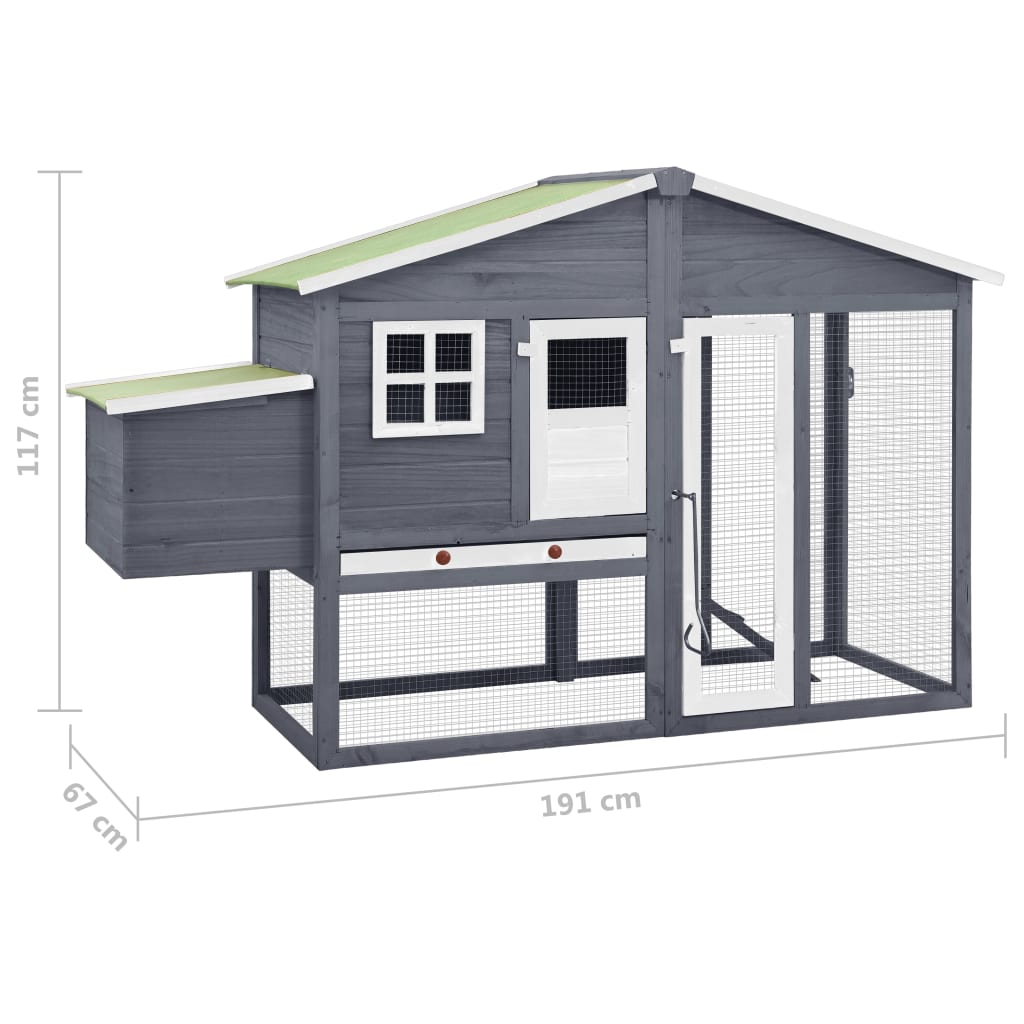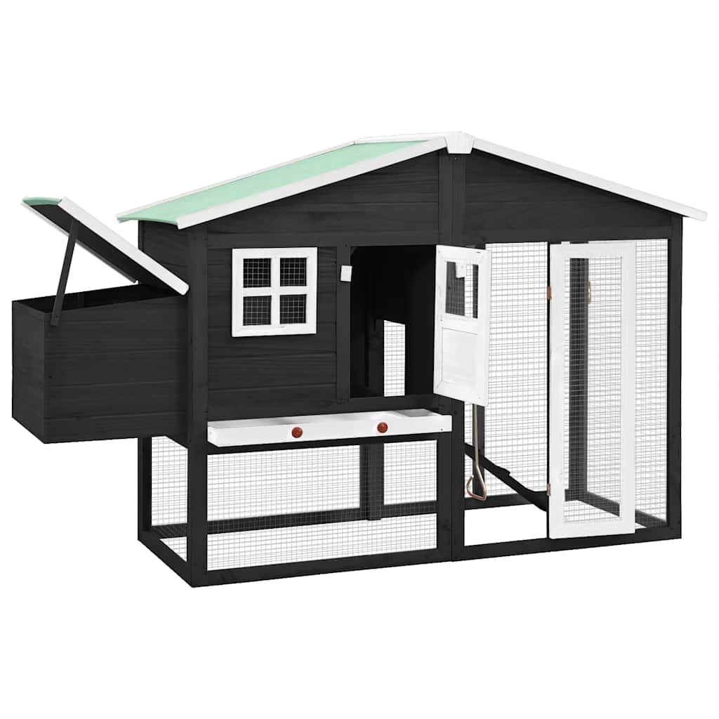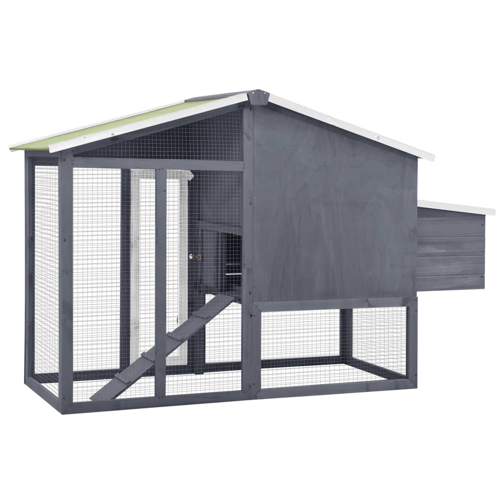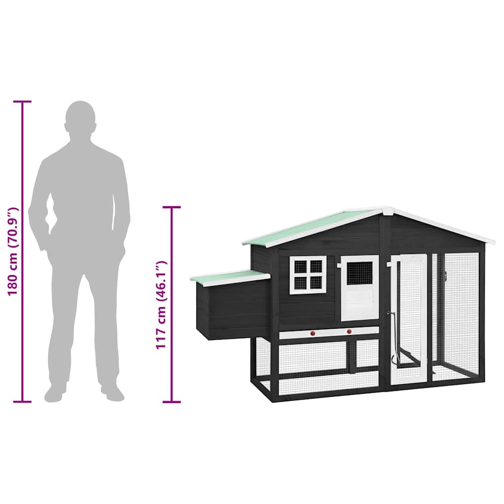 Dieser Holz-Hühnerstall bietet einen gemütlichen und komfortablen Ort für kleinere Tiere, insbesondere Geflügel. Der Hühnerkäfig verfügt über ein umfassendes Design mit einem Haus, einem Nistkasten und einem sehr großen Lauf mit verzinktem Stahldrahtgeflecht, um Ihr Geflügel im Auge zu behalten. Es stellt Ihrer Hühner genügend frische Luft zur Verfügung. Der Hühnerstall besteht aus massivem Tannenholz und ist daher langlebig. Auch das Kippdach ist mit wasserabweisendem Stoff bezogen und hält Regen fern. Der Abstellraum bietet den perfekten Schlafbereich. Zusätzlich führt die rutschsichere Rampe von unten in die obere Etage; die ausziehbare Ablage erleichtert die Reinigung. Dieser Hühnerstall ist perfekt für Ihre Haustiere in Ihrem Garten.