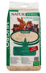 HUGRO - Naturstreu - Hanfeinstreu- 100% chemikalienfrei, 100% pflanzlichKleintier macht auch Mist. - Aber natürlich!Hugro-Naturstreu ist absolut hochprozentig: 560% Saugfähigkeit! Da können Ihre Liebsten schon eine ganze Menge Mist machen. Ohne unangenehme Geruchsentwicklung.Hugro Naturstreu saugt auf wie ein natürlicher Schwamm und hält dicht. Sie bindet die Flüssigkeit in der Mitte der kleingehäckselten, staubgereinigten Streu.HUGRO® Naturstreu wird aus dem Stängelmark der Hanfpflanze gewonnen. Hochgereinigt und von allem Beiwerk befreit, zeichnet sich HUGRO® Naturstreu durch seine Sauberkeit aus. Die enorme Saugfähigkeit ist eine besondere Eigenschaft der Naturstreu. Es ist 12 x aufnahmefähiger als Stroh und 4 x saugfähiger als Hobelspäne. Feucht gewordene Streu verklebt nicht. Durch die lockere offene Struktur und durch die Hanfporen, findet in der als Bodenbelag verwendeten Streu ein ständiger Luftaustausch statt. Dadurch entstehen keine Fäulnis- und Gärungsprozesse und somit auch keine Geruchsbelästigungen. Die Feuchtigkeit wird wieder an die Umwelt abgegeben. Der Geruch bleibt in den Kapillaren der Streu gebunden. Das schafft wohl keine andere Streu! HUGRO® Naturstreu eignet sich besonders für kleine Nager die in der Streu ihre Höhlen und Nester bauen. Von den Nagern gebaute Gänge und Höhlen fallen nicht zusammen und sind stabil. Damit ist den Nagern eine hervorragende Streu geboten, welche ihren natürlichen Bedürfnissen sehr entgegenkommt. Selbst Jungtiere gedeihen in „Streunestern” sehr gut. Keine Erstickungsgefahr und kein Vergiftungsrisiko des in HUGRO® Naturstreu geborenen Nagernachwuchses. Die thermische Isolierung hält die nötige Nestwärme. Durch die gegebene Luftzirkulation bleiben Nester, Gänge und Höhlen sauber und hygienisch. Daher ist auch eine Reinigung des Heimtierkäfigs problemlos und mühelos möglich.Entsorgt wird ganz einfach und hygienisch. Entweder wird die Streu kompostiert und als Naturdünger eingesetzt oder zum Mulchen von Anlagen benutzt. Und falls Sie hierzu keine Gelegenheit haben, vielleicht haben Sie ja Bekannte, die sich darüber freuen. Ansonsten geben Sie die alte Streu in den Bio-Müll.Hinweis für den Naturschutz: HUGRO® Naturstreu wird aus jährlich nachwachsenden Pflanzen, die in Kulturen angebaut werden, gewonnen. Also ein wichtiger Beitrag zum Naturschutz und zu einer guten Öko- und Energiebilanz.Fazit: Ein sparsames Naturprodukt zum Wohl der Heimtiere und der Heimtierhalter mit großen Vorzügen für einen wertvollen Natur- und Umweltschutz.HUGRO® Naturstreu wird auch im 10 Liter Tragebeuteln und im 100-Liter Großverbraucherpack angeboten.