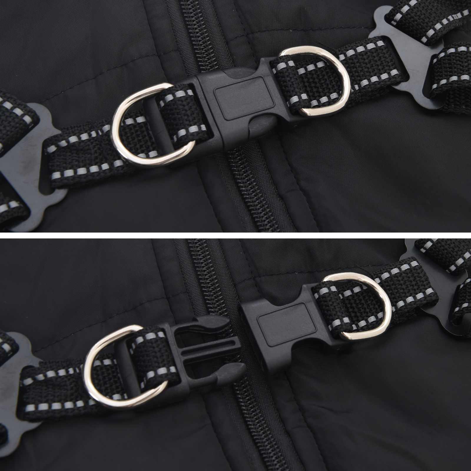 Dieser Hundemantel ist top für den Winter draußen und verbindet Praktikabilität mit Komfort. Er wurde für Hunde gemacht, die den Winter lieben, und bietet nötigen Schutz mit seinem winddichten und wasserabweisenden Material. Mit seinem stylischen Look ist er das perfekte Accessoire für dich und deinen Hund, wenn es darum geht, den Winter mit Stil zu überstehen. Winddicht & Wasserabweisend: Aus Fleece und Polyester gemacht, hält dieser Mantel auch den härtesten Winterelementen stand. So bleibt dein Haustier bei kaltem Wind und Regen trocken und kuschelig, während ihr draußen unterwegs seid. Längen- & Breitenanpassbarkeit: Der Mantel passt sich dank verstellbarer Teile optimal verschiedenen Hundegroßen an. So sitzt er bequem und sicher, ohne die Bewegungsfreiheit zu beeinträchtigen. Reflektierende Sicherheitsstreifen: Die reflektierenden Streifen erhöhen die Sichtbarkeit, besonders wenn ihr abends oder bei schlechtem Licht unterwegs seid. Das sorgt für mehr Sicherheit, ohne dass das coole Design leidet. Integriertes Geschirr: Mit dem glatten Rückenreißverschluss und den doppelten D-Ringen kommt dieser Mantel mit einem praktischen integrierten Geschirr-System. So kannst du deinen Hund sicher befestigen und brauchst dir keine Gedanken über extra Halsbänder oder Geschirre zu machen. Kuschelige Vliesfütterung: Die Innenfütterung aus Fleece bietet extra Wärme und Komfort und macht es deinem Hund gemütlich, besonders in den kalten Monaten. Dieses coole Design sorgt dafür, dass er lange getragen werden kann!