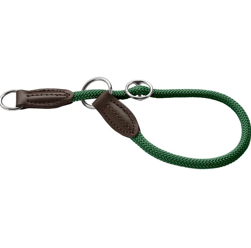 Dressurhalsung FreestyleEine Halsung wie die Dressurhalsung FREESTYLE ist die perfekte Halsbandform, wenn Sie Ihrem Hund das Halsband schnell anlegen und abnehmen wollen, oder wenn Sie die spezielle stufenlose Anpassungsmöglichkeit der Halsung einem herkömmlichen Halsband vorziehen. Die Dressurhalsung FREESTYLE besteht aus einem Tau aus Polyamid. Dieses Material macht es möglich, dass das Tau außen weich und anschmiegsam ist, innen aber einen belastbaren und sehr strapazierfähigen Kern hat. Die Dressurhalsung FREESTYLE ist dadurch auch witterungsbeständig und pflegeleicht, also ideal für den täglichen Einsatz. Ein besonders stabiler Stoppring sorgt dafür, dass die stufenlos verstellbare Halsung sich nur so weit zuzieht wie vorgesehen. So können Sie sicher sein, dass die Dressurhalsung FREESTYLE nie enger ist, als Sie das möchten.- Tau aus strapazierfähigem Polyamid- Kappen aus Leder- Mit besonders stabilem Stoppring- Stufenlos verstellbar- PflegeleichtDurchmesser: 10 mm - Größe: L - Verstellmöglichkeiten: max. 55 cmInverkehrbringer: HUNTER International GmbH, Mittelbreede 5, 33719 Bielefeld, Tel.: 0521/16399500, E-Mail: info@hunter.de