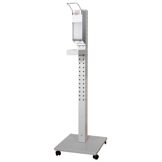 - Abmessungen: Hygienesäule: 124,5 cm (H), Bodenplatte: 38 x 40 x 2,4 cm (L x B x H), gesamt ohne Rollen 127 cm (H), mit Rollen 132 cm (H )