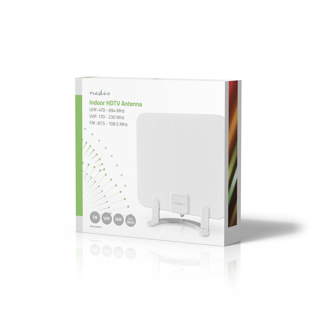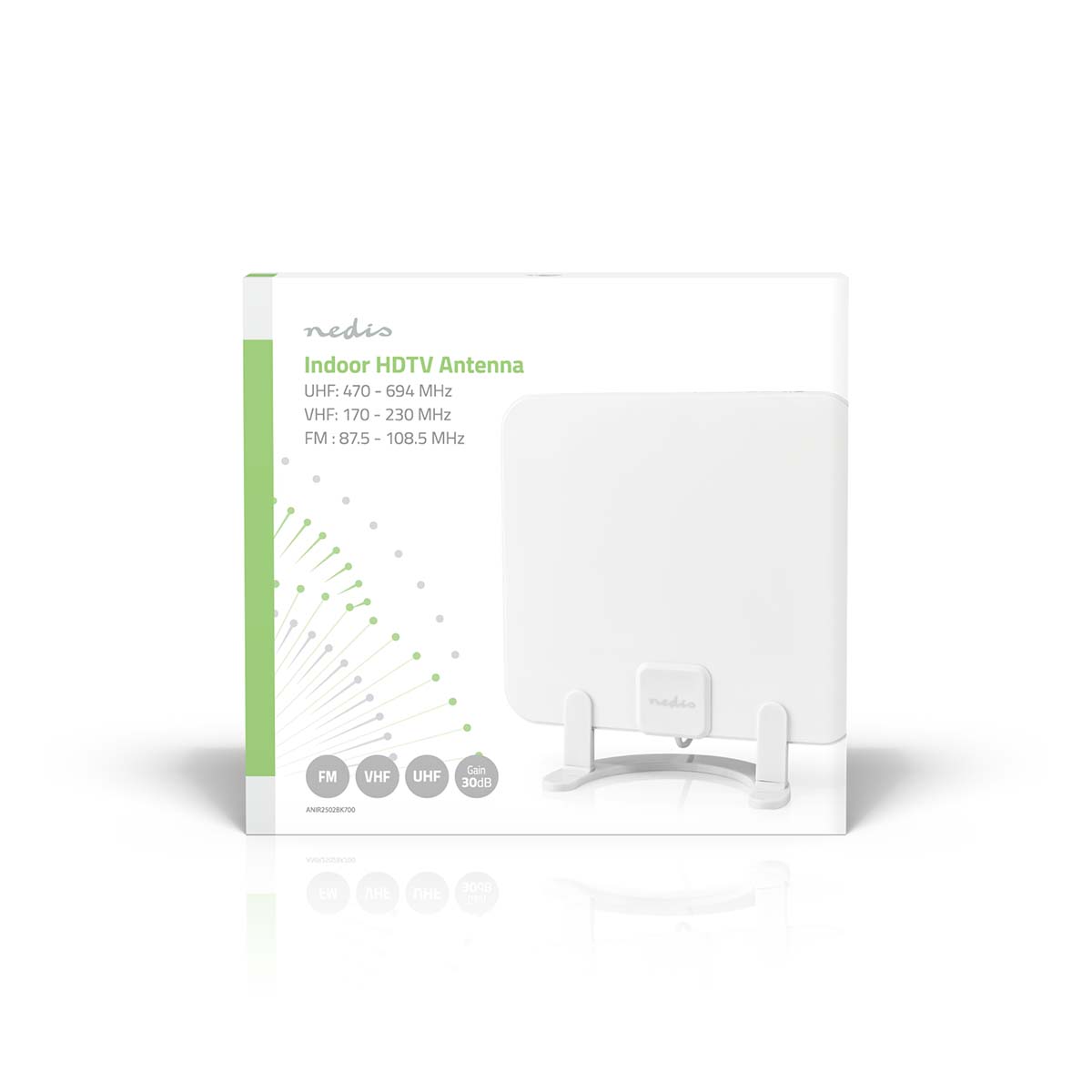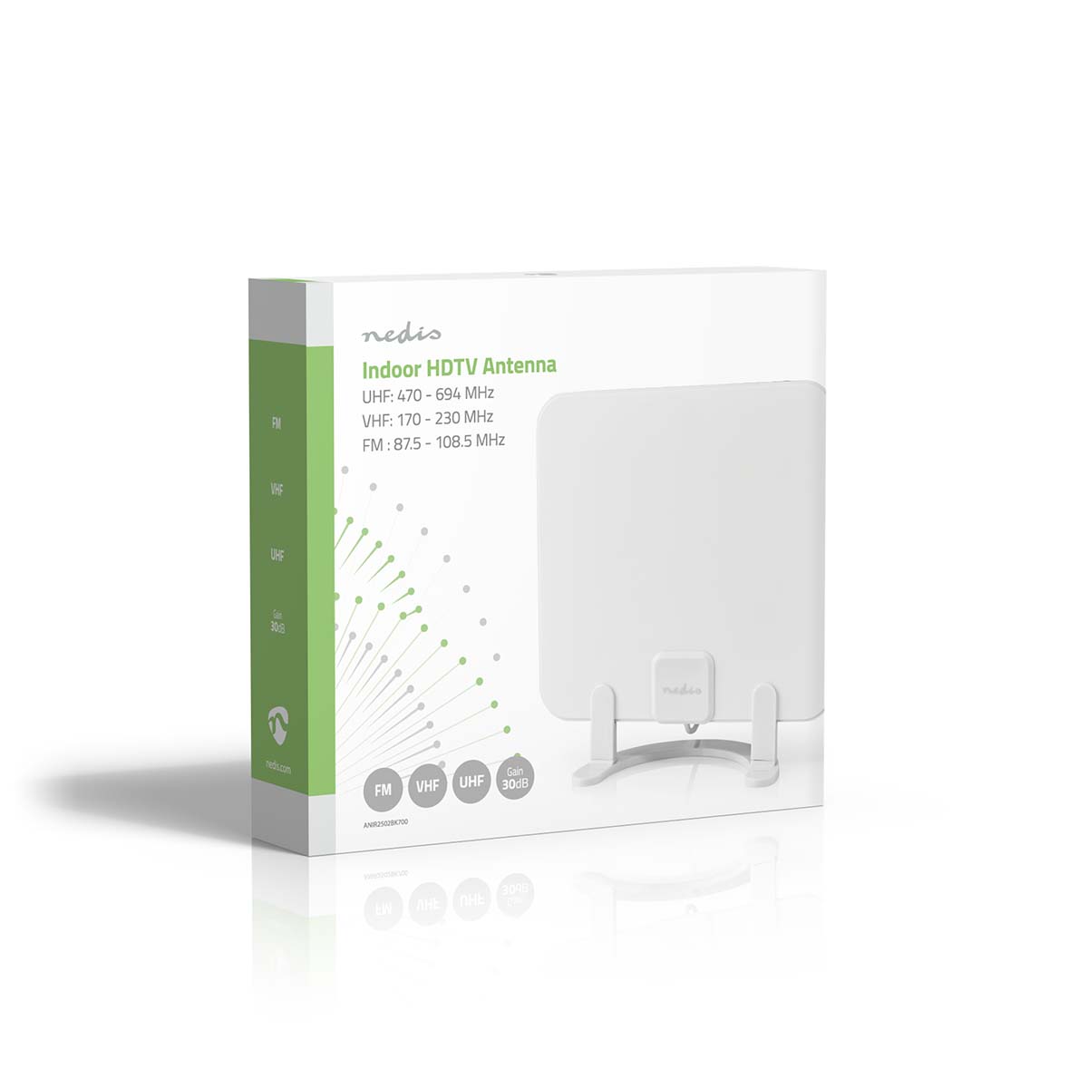 Diese Nedis DVB-T/T2 Innenantenne gewährleistet stabilen Empfang von frei empfangbaren Kanälen, Pay-TV (falls abonniert) sowie UKW-Radiosignalen. Die Antenne verfügt über ein kompaktes und elegantes Design und fügt sich hervorragend in jede Inneneinrichtung ein.