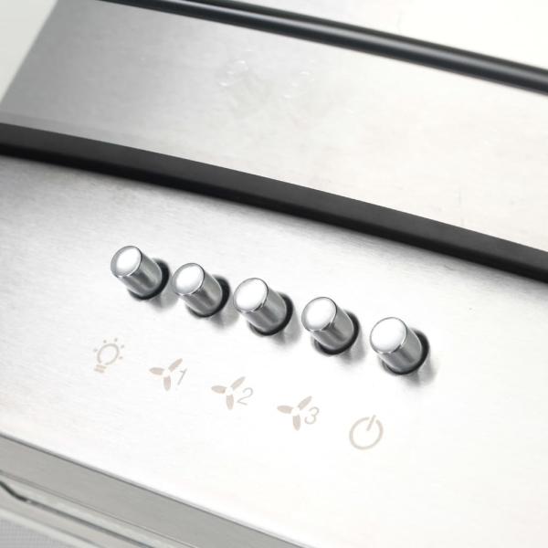 Unsere geräuscharme und leistungsstarke Insel-Dunstabzughaube eignet sich ideal dazu, Rauch, Fett, Feuchtigkeit und sogar Wärme aus Ihrer Küche effektiv abzuführen. Ihr Edelstahlgehäuse wird in Kombination mit einer schlanken, geschwungenen, gehärteten Glashaube ausgeliefert, was Ihrer Küche ein stilvolles und modernes Aussehen verleiht. Diese Insel-Dunstabzugshaube ist mit einem 3-schichtigen, waschbaren Aluminium-Fettfilter ausgestattet, um das Innere der Dunstabzugshaube und die Abluftleitung vor Fett zu schützen. Die eingebauten LED-Leuchten sorgen für eine hervorragende Ausleuchtung, erleichtern das Kochen und schaffen ein schönes Ambiente in Ihrer Küche. Die Dunstabzugshaube verfügt über 3 variable Geschwindigkeiten, sodass Sie die Absaugleistung vollständig kontrollieren können, und einen Kohlefilter, der dabei hilft, die Luft zu reinigen und die gereinigte Luft wieder in die Küche abzuführen, während die externe Abluft die Kochgerüche mit Hilfe des mitgelieferten Abluftrohrs nach außen ableitet. Die Montage ist einfach. Die Inselhaube passt gut in eine offene Küche mit Kochinsel als eigenständige Haube, kann aber auch ohne Kochinsel verwendet werden.