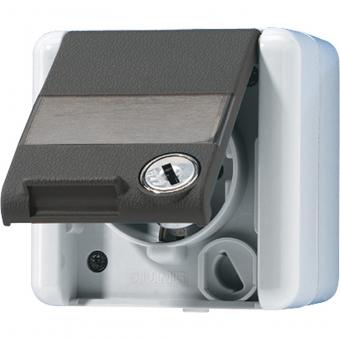 Jung 820NAWSL SCHUKO Steckdose, 16 A, 250 V ~, mit Klappdeckel, Schriftfeld und Sicherheitsschloss