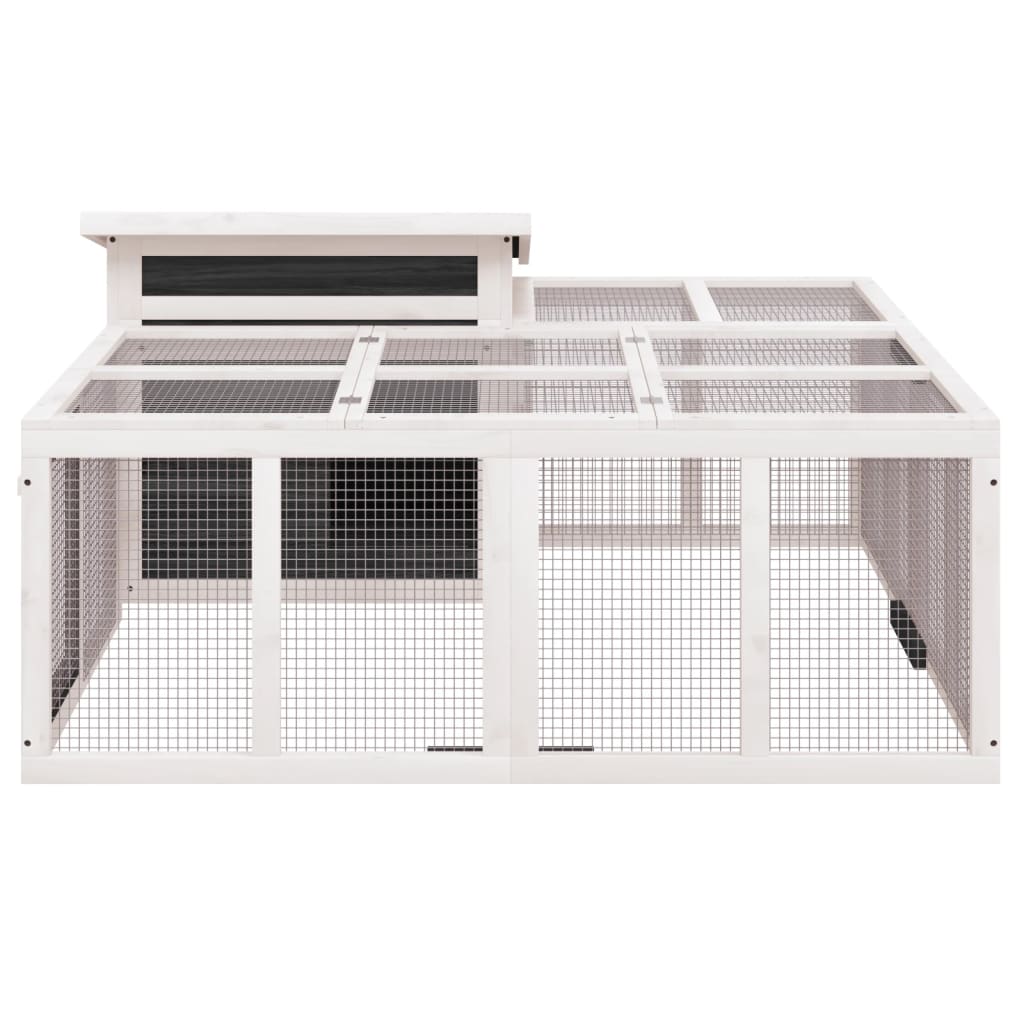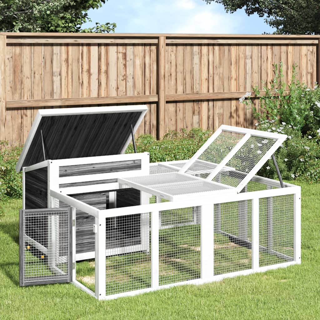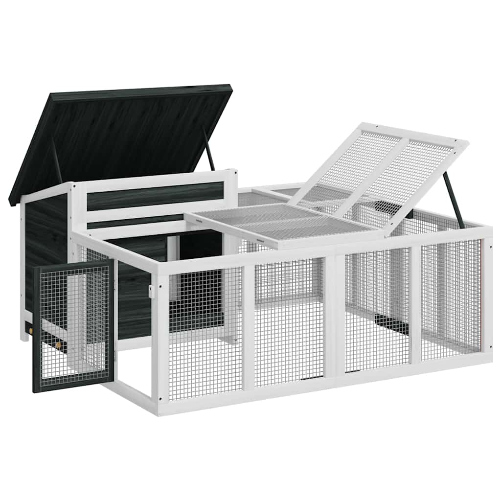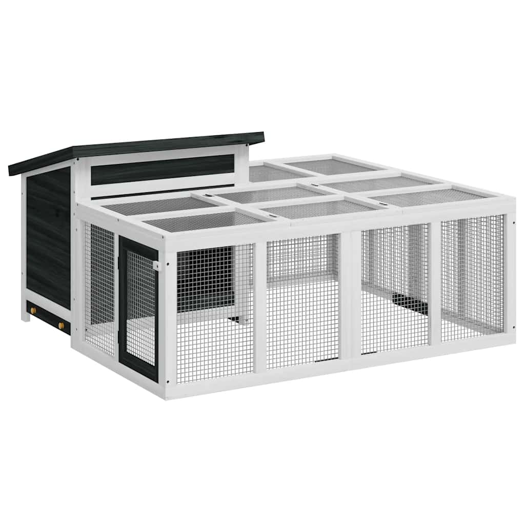 Dieser Kaninchenstall verfügt über ein geräumiges Freilaufgehege und einen Schlafbereich und bietet dadurch deinen pelzigen Freunden wie Kaninchen, Meerschweinchen, kleinen Enten und anderen Kleintieren eine sichere und gemütliche Umgebung zum Spielen und Ausruhen. Robuste Konstruktion: Dieser Kaninchenstall ist aus massivem Kiefernholz gefertigt und besitzt dadurch eine robuste Konstruktion. Kiefernholz ist ein wunderschönes Naturmaterial. Es weist eine geradlinige Maserung auf und die Aststellen verleihen dem Material seine charakteristische, rustikale Optik. Mit seinem wasserfesten Dach eignet sich der Kaninchenkäfig perfekt für den Außenbereich.Wände aus Maschendraht: Der Kaninchenkäfig ist mit Wänden aus Maschendraht ausgestattet, die unerwartete Unfälle verhindern. So kannst du deine Kaninchen täglich beobachten, während die Kaninchen ein breites Sichtfeld und ausreichend frische Luft genießen.Für mehrere Aktivitäten geeignet: Mit einem Nistkasten und einem geräumigen Freilaufgehege versehen, bietet das Kaninchenhaus deinen kleinen Haustieren viel Platz zum Spielen und Herumlaufen.Auslaufsichere Wanne: Das Kaninchengehege wird mit einer herausziehbaren, auslaufsicheren Wanne geliefert, die die Reinigung erleichtert.