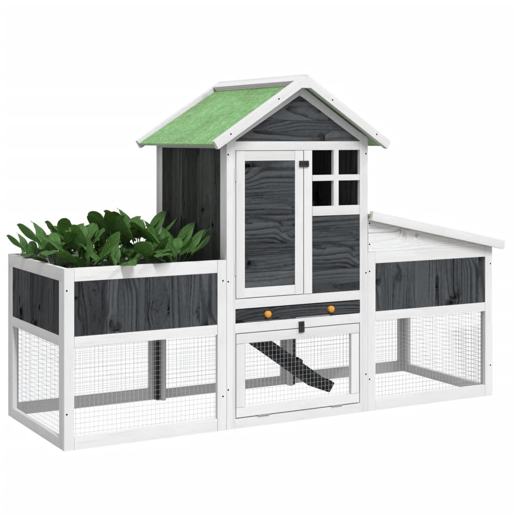 Dieser Kaninchenstall verfügt über ein geräumiges Freilaufgehege und einen Schlafbereich und bietet dadurch deinen pelzigen Freunden wie Kaninchen, Meerschweinchen, kleinen Enten und anderen Kleintieren eine sichere und gemütliche Umgebung zum Spielen und Ausruhen. Robuste Konstruktion: Dieser Kaninchenstall ist aus massivem Kiefernholz gefertigt und besitzt dadurch eine robuste Konstruktion. Kiefernholz ist ein wunderschönes Naturmaterial. Es weist eine geradlinige Maserung auf und die Aststellen verleihen dem Material seine charakteristische, rustikale Optik. Mit seinem wasserfesten Dach eignet sich der Kaninchenkäfig perfekt für den Außenbereich.Wände aus Maschendraht: Der Kaninchenkäfig ist mit Wänden aus Maschendraht ausgestattet, die unerwartete Unfälle verhindern. So kannst du deine Kaninchen täglich beobachten, während die Kaninchen ein breites Sichtfeld und ausreichend frische Luft genießen.Kaninchenhaus auf zwei Ebenen: Das Kaninchenhaus auf zwei Ebenen verfügt über einen erhöhten Nistkasten und ein geräumiges Freilaufgehege und bietet dadurch Kleintieren reichlich Platz zum Spielen und Herumlaufen. Dank der Rampe können deine vierbeinigen Freunde den oberen Schlafbereich und das untere Freilaufgehege leicht erreichen.Auslaufsichere Wanne: Das Kaninchengehege wird mit einer herausziehbaren, auslaufsicheren Wanne geliefert, die die Reinigung erleichtert.