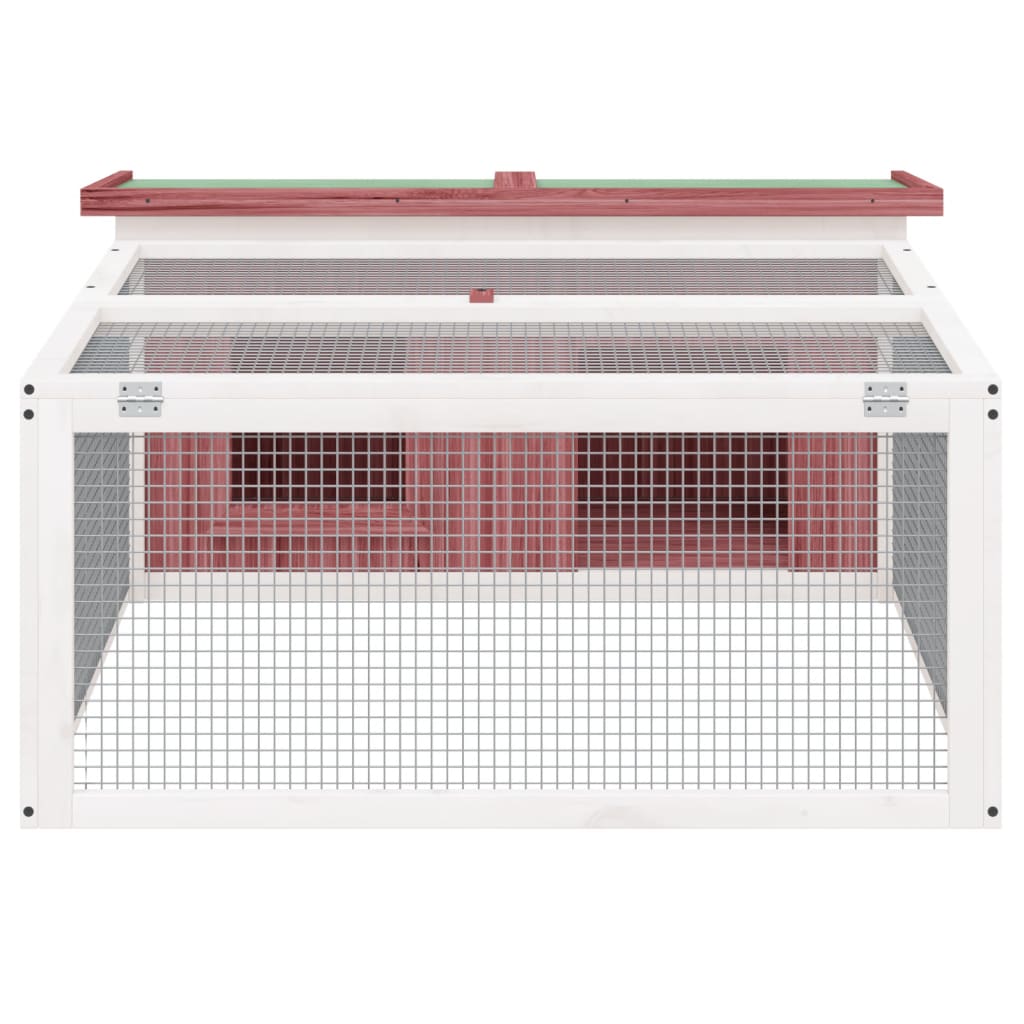 Dieser Kaninchenstall verfügt über ein geräumiges Freilaufgehege und einen Schlafbereich und bietet dadurch deinen pelzigen Freunden wie Kaninchen, Meerschweinchen, kleinen Enten und anderen Kleintieren eine sichere und gemütliche Umgebung zum Spielen und Ausruhen. Robuste Konstruktion: Dieser Kaninchenstall ist aus massivem Kiefernholz gefertigt und besitzt dadurch eine robuste Konstruktion. Kiefernholz ist ein wunderschönes Naturmaterial. Es weist eine geradlinige Maserung auf und die Aststellen verleihen dem Material seine charakteristische, rustikale Optik. Mit seinem wasserfesten Dach eignet sich der Kaninchenkäfig perfekt für den Außenbereich.Wände aus Maschendraht: Der Kaninchenkäfig ist mit Wänden aus Maschendraht ausgestattet, die unerwartete Unfälle verhindern. So kannst du deine Kaninchen täglich beobachten, während die Kaninchen ein breites Sichtfeld und ausreichend frische Luft genießen.Für mehrere Aktivitäten geeignet: Mit einem Nistkasten und einem geräumigen Freilaufgehege versehen, bietet das Kaninchenhaus deinen kleinen Haustieren viel Platz zum Spielen und Herumlaufen.