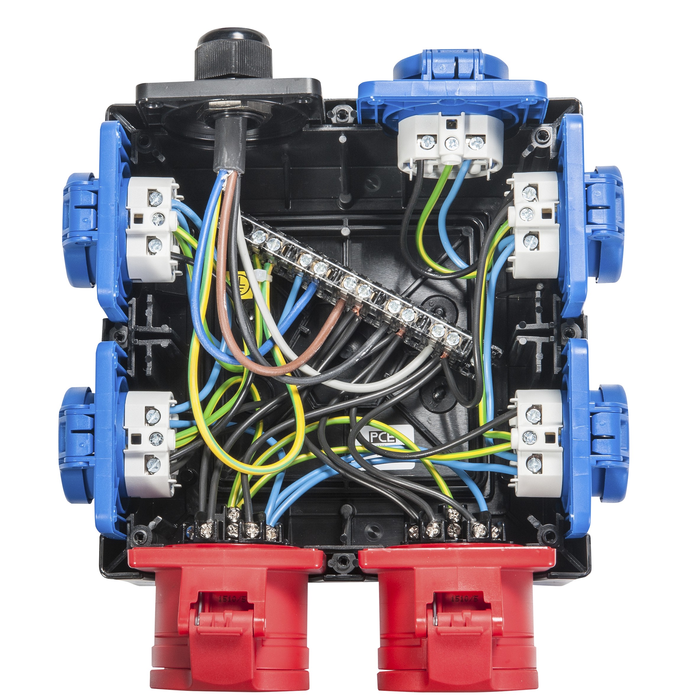 - die Schutzschaltgeräte sind unter einer transparenten, schlagfesten Polycarbonatabdeckung eingebaut