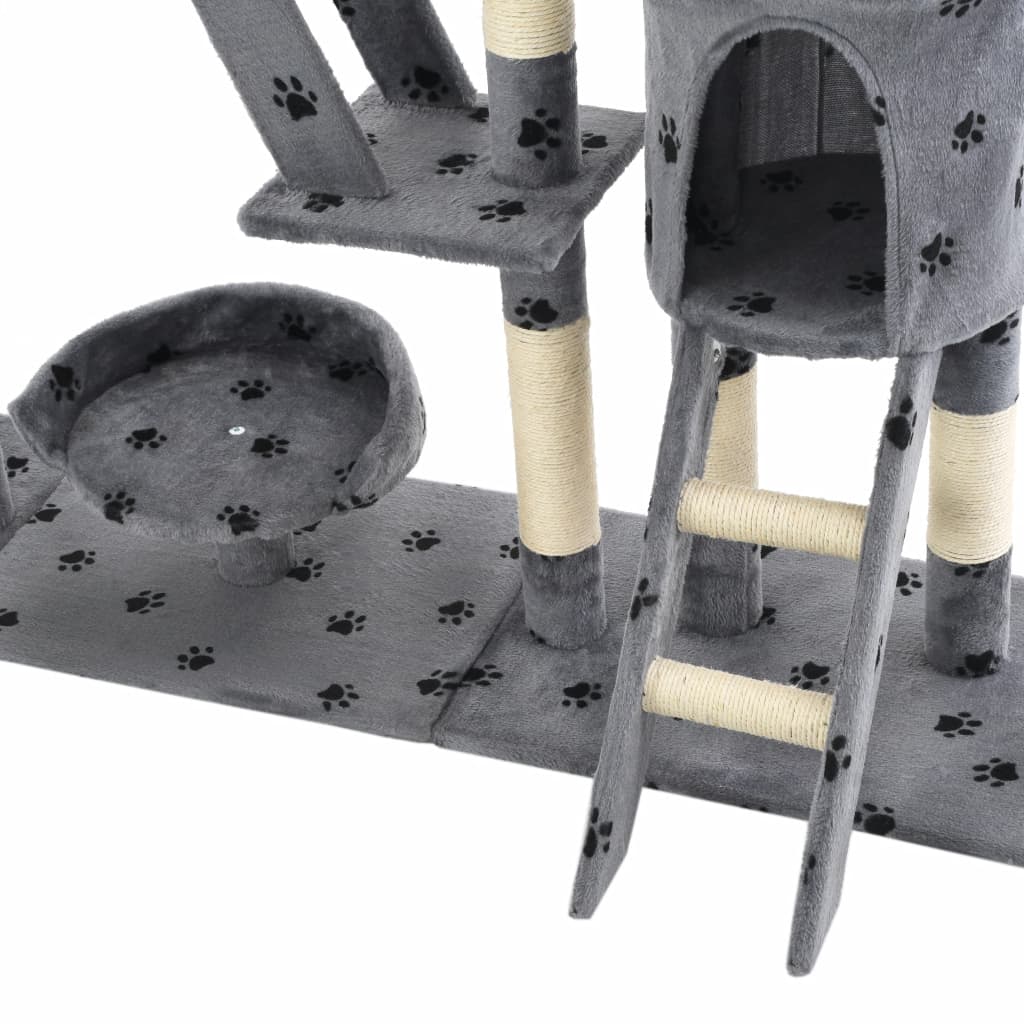 Verwöhnen Sie Ihre schnurrenden Freunde mit einem Hauch von Luxus - mit unserem Katzen-Kratzbaum! Dieser mehrstöckige Katzen-Spielplatz mit einem soliden, plüschbezogenen Rahmen ist der perfekte Rückzugsort für Ihre Katzen zum Krallenschärfen, Klettern, Verstecken und Ausruhen. Ihre Stubentiger können ihre Krallen an den Kratzsäulen schärfen, die mit Sisalseil umwickelt sind, was ihre Kratzinstinkte auf gesunde Weise befriedigen. Ebenfalls werden es die Katzen genießen, einander hinterherzujagen, während sie diesen lustigen Spielplatz hoch- und runterspringen. Nachdem sie genug Spielspaß haben, werden Ihre kleinen vierbeinigen Freunde es lieben, sich auf den oberen Plattformen auszuruhen, wo sie eine bessere Aussicht haben. Sie können sich auch in den gemütlichen Häusern verstecken, um ein Nickerchen zu machen oder sich in den bequemen Körben oder der Hängematte entspannen. Mit all seinen lustigen Funktionen wird dieses Katzen-Spielhaus schnell zum Lieblingsplatz Ihrer Stubentiger! Der Kratzbaum ist leicht zu montieren.