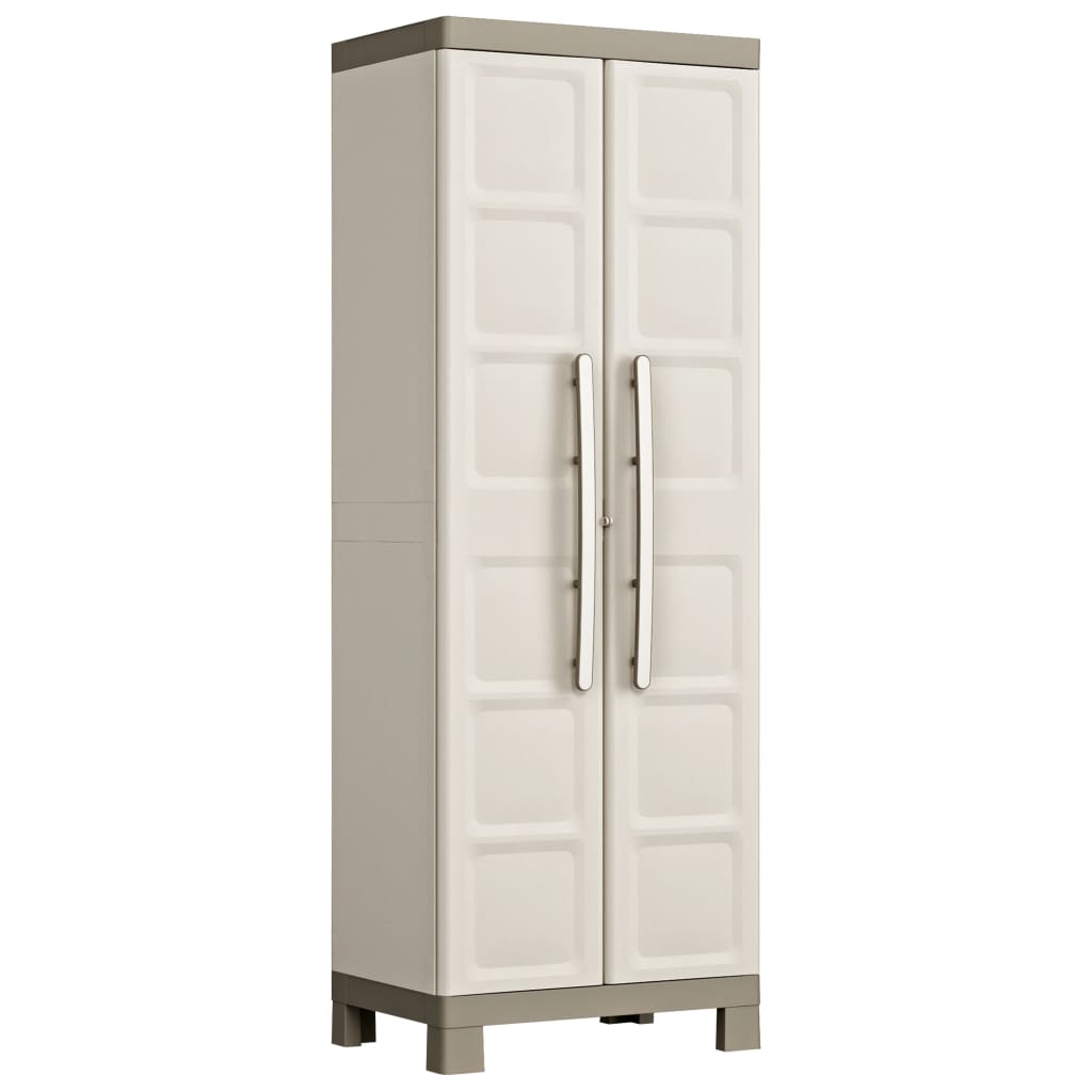 Auf der Suche nach einem Möbelstück, um deinen verfügbaren Stauraum optimal auszunutzen? Mit dem kompakten und praktischen Excellence Lagerschrank mit Einlegeböden von Keter hat das Suchen ein Ende! Mit seinem eleganten Design in Kontrastfarben ist dieser Schrank ein Blickfang in deiner Garage, Waschküche oder im Ankleideraum. Mit 4 Einlegeböden mit einer maximalen Tragfähigkeit von je 15 kg, 2 praktischen Ablagen und abschließbaren Türen mit ergonomischen Griffen versehen, ist dieser Hochschrank die perfekte Wahl für die sichere Aufbewahrung der unterschiedlichsten Sachen. Darüber hinaus ermöglichen die erhöhten Standfüße eine einfache und praktische Reinigung der Böden.