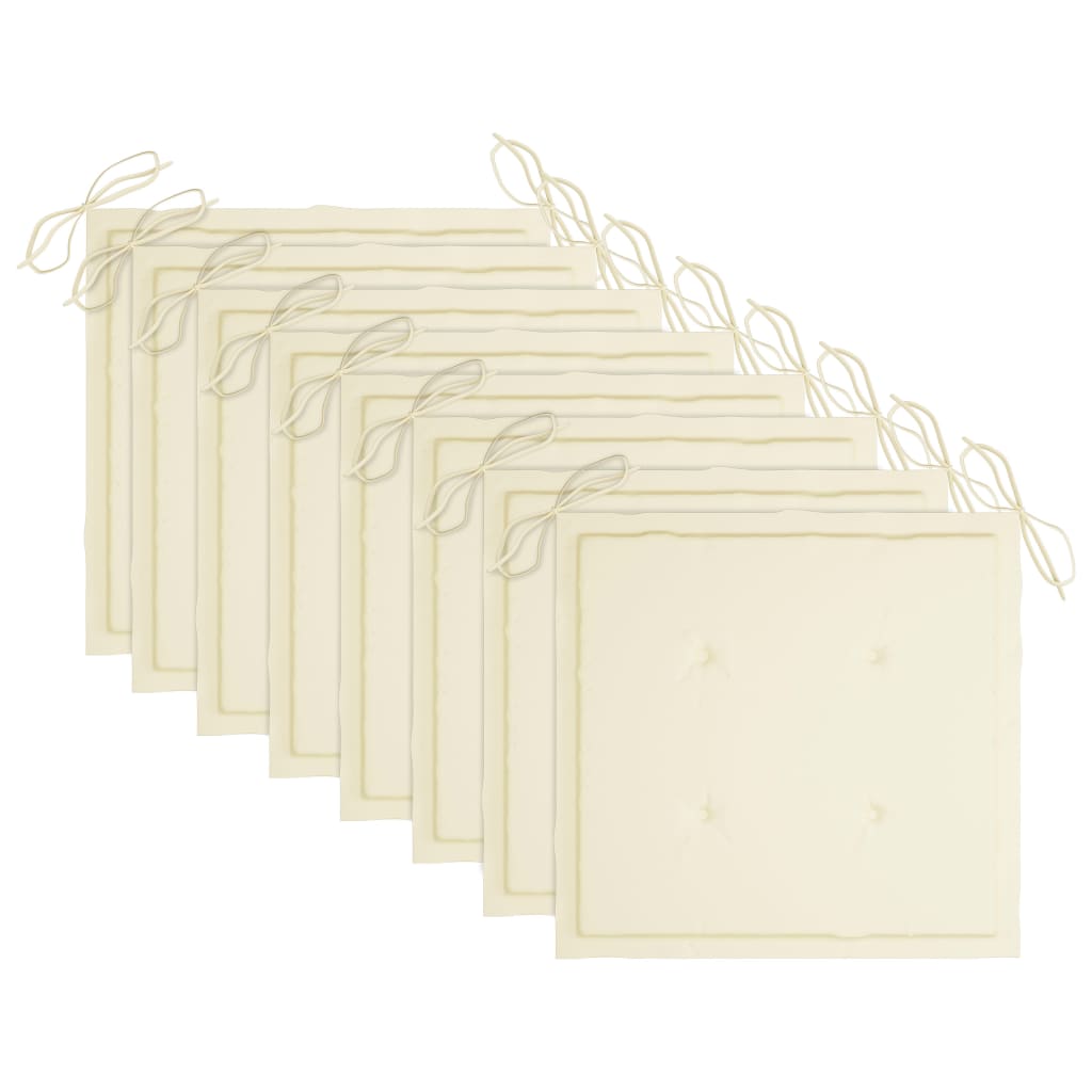 Dieses Gartenstuhl-Set aus Holz zeichnet sich durch ein zeitloses Design aus. Dank ihres schlichten und zugleich stilvollen Designs passen die Gartenstühle zu jeder Einrichtung, sei es Wohnungen, Büros, Bars oder Cafés. Das für dieses Möbelset verwendete Teakholz ist technisch getrocknet und anschließend fein geschliffen worden, um ein sehr glattes Erscheinungsbild zu eralten. Teakholz ist für seine außergewöhnliche Festigkeit und Witterungsbeständigkeit geschätzt und eignet sich daher besser für Gartenmöbel als jede andere Holzart. Teakholz ist die perfekte Wahl, wenn Sie ein langlebiges Gartenmöbel erwerben möchten. Dank der geschliffenen Oberfläche sind die Essstühle witterungsbeständig und leicht zu reinigen. Sie können auch zusammengeklappt werden, um bei Nichtgebrauch Stauraum zu sparen. Darüber hinaus sorgen die mitgelieferten Kissen für zusätzlichen Komfort. Jedes Kissen ist mit je 2 Bändern an zwei Ecken zur festen Befestigung am Stuhl versehen. Hinweis: Um die Lebensdauer Ihrer Gartenmöbel zu verlängern, empfehlen wir Ihnen, diese regelmäßig zu reinigen und bei Nichtgebrauch im Freien abzudecken.Reinigung: Verwenden Sie eine milde SeifenlösungLagerung: Wenn möglich, an einem kühlen, trockenen Ort im Innenbereich lagern. Wenn das Produkt im Freien gelagert wird, schützen Sie es mit einer wasserdichten Abdeckung. Wischen und trocknen Sie das überschüssige Wasser oder den Schnee nach Regen oder Schneefall von der ebenen Fläche. Sorgen Sie für eine ausreichende Luftzirkulation, um feuchtigkeitsbedingte Schäden zu vermeiden.