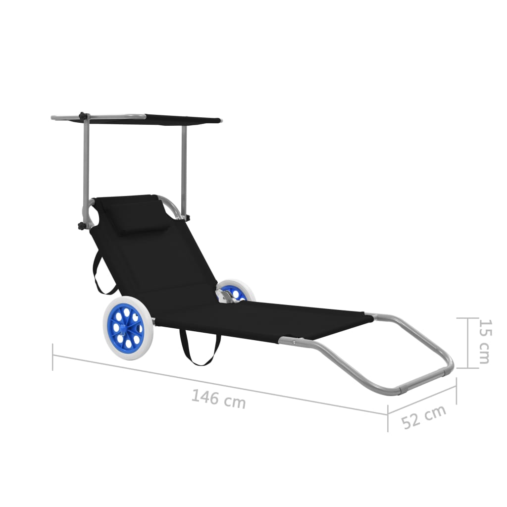 Auf dieser klappbaren Sonnenliege kannst du im Garten oder am Strand hervorragend entspannen und die Sonne genießen. Diese hochwertige Sonnenliege ist mit einem verstellbaren Dach ausgestattet, damit du ein unvergessliches Sonnenbad genießen kannst, ohne vor der Sonne geblendet zu werden. Das Gestell besteht aus robustem, pulverbeschichtetem Stahl, während die Liegefläche aus strapazierfähigem Polyestergewebe gefertigt sind. Die Rückenlehne ist verstellbar, so dass du es dir so bequem machen kannst, wie du willst. Für zusätzlichen Komfort ist ein weiches Kopfkissen mit dabei. Dank seines klappbaren Designs lässt sich diese Gartenliege leicht verstauen, wenn sie nicht gebraucht wird. Außerdem ist die Klappliege leichtgewichtig und für den bequemen Transport mit 2 Rädern ausgestattet.