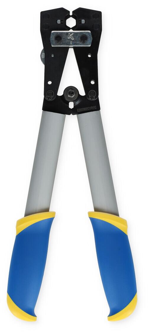 Kraftsparender und wartungsarmer mechanischer Antrieb. Mit drehbaren Profilscheiben. Exakte Qürschnittzuordnung durch daürhafte Markierung an den Profilscheiben. Für DIN Presskabelschuhe und Verbinder