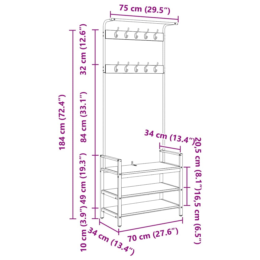 Dieser moderne Garderobenständer mit Stauraum ist das perfekte Stück, um Funktion und Stil zu kombinieren. Mit seinem schlanken rechteckigen Design und der glatten Oberfläche ist er eine praktische und stylische Ergänzung für dein Zuhause. Er hilft dir, organisiert zu bleiben und ist ideal für Familien oder jeden, der Raum und Effizienz schätzt. Er bietet viel Stauraum in verschiedenen Ebenen und Fächern. Der schicke schwarze Rahmen und die Metallbeine verleihen ihm einen minimalistischen Look, der zu jedem modernen Dekor passt. Materialien: Hergestellt aus Holzwerkstoff und Stahl, bietet dieser Garderobenständer Robustheit und Stil, ohne Kompromisse beim Aussehen einzugehen. Die Materialien sind wegen ihrer Stärke gewählt, was Zuverlässigkeit und ein schickes Finish garantiert, das in verschiedene moderne Interieurs passt. Enthaltene Komponenten: Kommt mit Holzwerkstoff-Regalen, die viel Platz für Mäntel, Schuhe und andere persönliche Sachen bieten. Der stabile Metallrahmen sorgt dafür, dass die Regale auch schwere Gegenstände tragen können, ohne wackelig zu werden. Funktionen / Design: Mit dem quadratischen Beindesign ist dieser Garderobenständer nicht nur schick, sondern auch super funktional. Die großen Regale erfüllen viele Aufbewahrungsbedürfnisse und machen ihn zur praktischen Wahl für dein Zuhause. Empfohlene Verwendung: Perfekt für Flure, Wohnzimmer oder Schlafzimmer. Dieser Garderobenständer hilft dir, deine täglichen Essentials in Ordnung zu halten. Leicht aufzubauen, verwandelt er unordentliche Stellen in ordentliche Bereiche und ist ideal für Berufstätige, Familien oder Minimalisten, die ihren Raum optimieren möchten. Pflege & Wartung: Um den Garderobenständer gut aussehen zu lassen, reicht ein Wisch mit einem feuchten Tuch, um Staub oder Flecken zu entfernen. Diese einfache Pflege sorgt dafür, dass er schick bleibt und gleichzeitig Funktionalität und Stil in deinem Zuhause bietet.