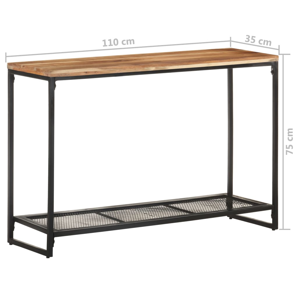 Wenn Sie Ihrer Inneneinrichtung einen schlichten Hauch von rustikalem Charme verleihen möchten, ist dieser Konsolentisch aus Holz die perfekte Wahl! Dieser Beistelltisch besteht aus massivem Akazienholz. Die exquisite Handwerkskunst und die schöne Holzmaserung machen jedes Möbelstück zu einem Unikat. Darüber hinaus tragen die pulverbeschichteten Eisenbeine zu seiner Robustheit und Stabilität bei. Das 1 Regal bietet zusätzlichen Stauraum für Ihre Sachen. Wichtiger Hinweis: Die Farben variieren von Stück zu Stück und machen jeden Flurtisch einzigartig.