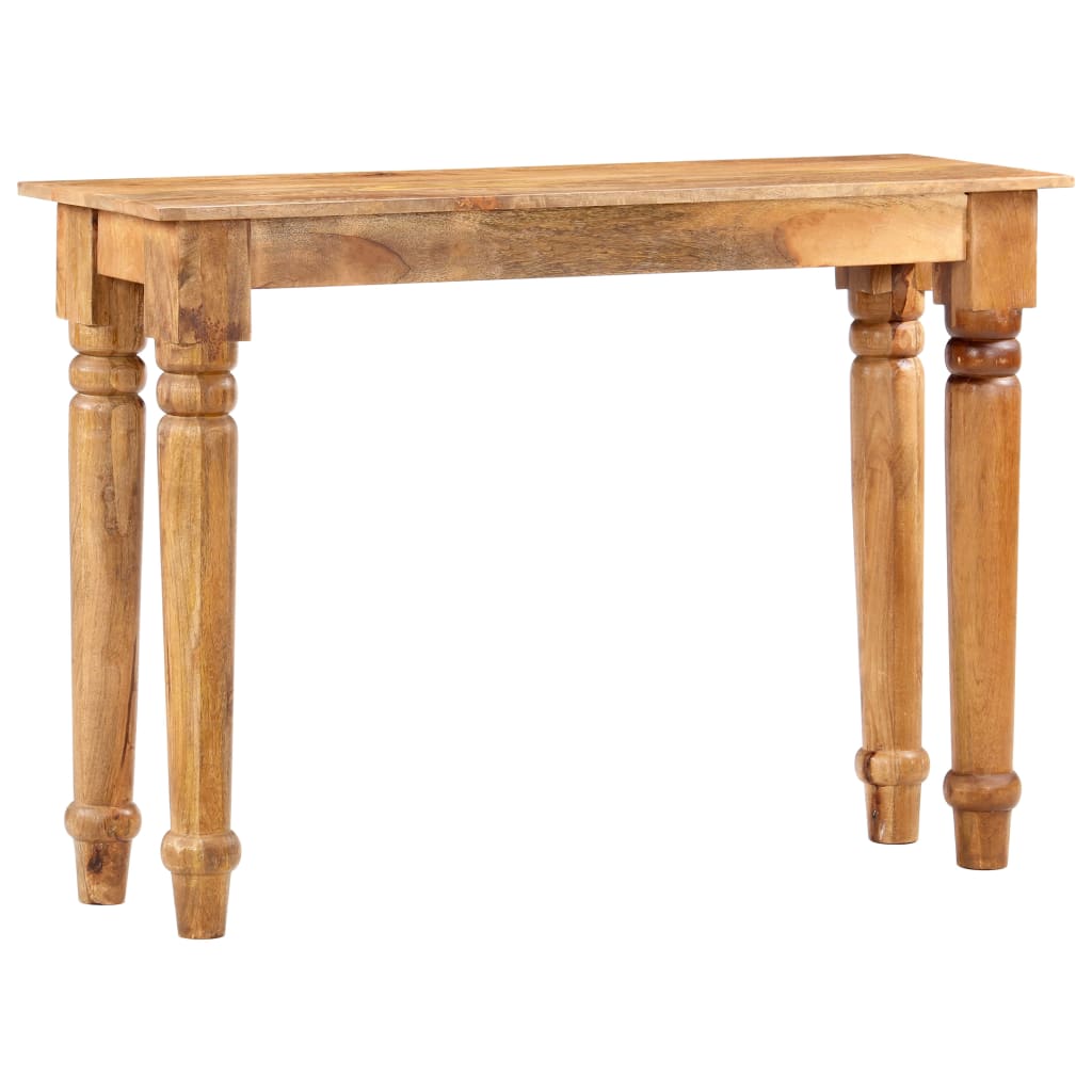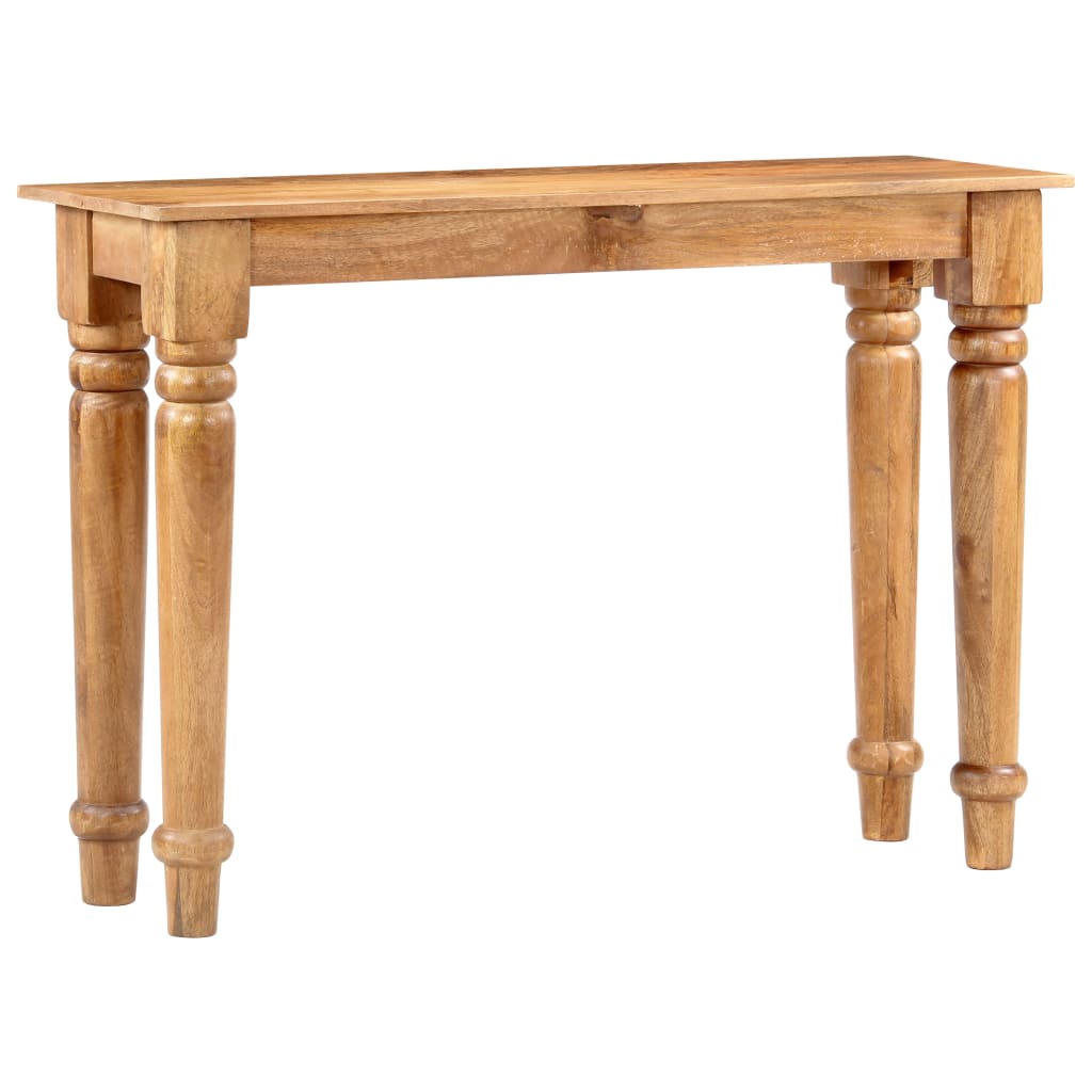 Dieser zeitlose Konsolentisch aus Holz mit klassischem Design ist eine unverwechselbare Ergänzung Ihrer Inneneinrichtung! Der Flurtisch ist aus massivem Mangoholz gefertigt, einem Hartholz mit dichter Maserung. Raues Mangoholz ist nicht nur robust genug, um Gewicht zu tragen, sondern hält auch der Abnutzung der Zeit stand. Jeder Arbeitsschritt wird mit größter Sorgfalt ausgeführt, sei es Polieren oder Lackieren. Die exquisite Handwerkskunst und die auffällige Holzmaserung machen jedes Möbelstück unverwechselbar und leicht anders als das nächste. Zusätzlich tragen die starken und glatten Beine zur stabilen Konstruktion bei. Der Beistelltisch ist einfach zu montieren. Wichtiger Hinweis: Die Farben können von Stück zu Stück variieren, wodurch jeder Tisch einzigartig ist; die Lieferung erfolgt nach dem Zufallsprinzip.