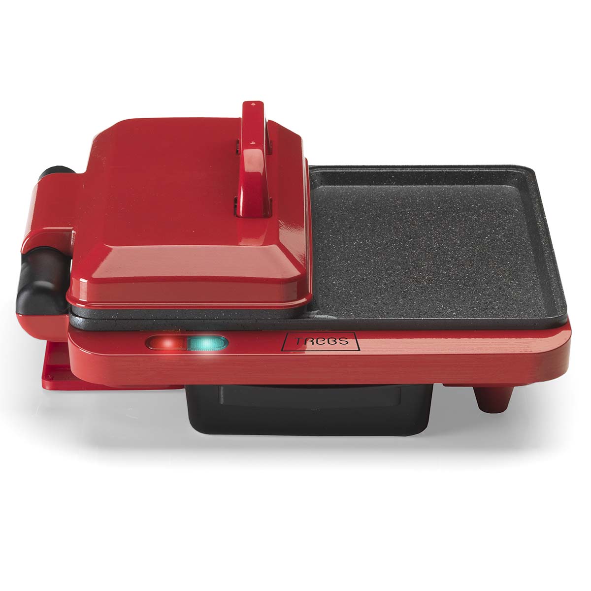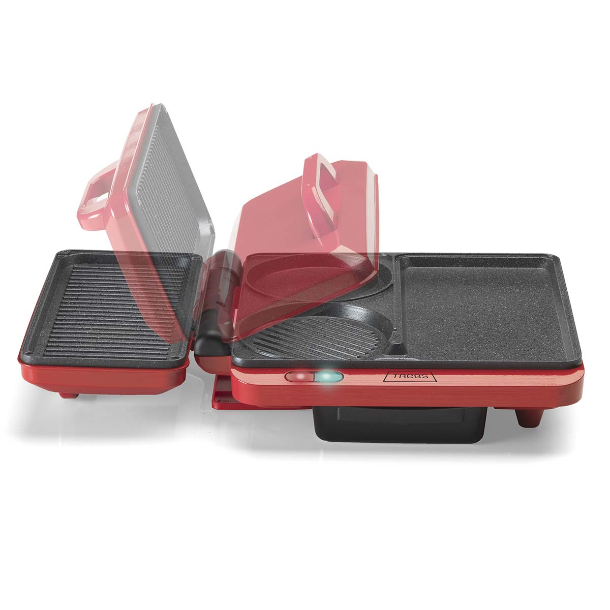 Backen Sie ein Ei, während Sie einen Pfannkuchen zubereiten. Brötchen grillen und Hamburger backen. Sie können Trebs Contact und Table Multi Grill 99362 Comfort Cook verwenden. Der Trebs Kontakt- und Tisch Multi Grill 99362 Comfort Cook ist ein Kontakt- und Tischgrill für die Zubereitung von Fleisch, Fisch, Gemüse, Pfannkuchen oder Sandwiches. Sie können endlos variieren.