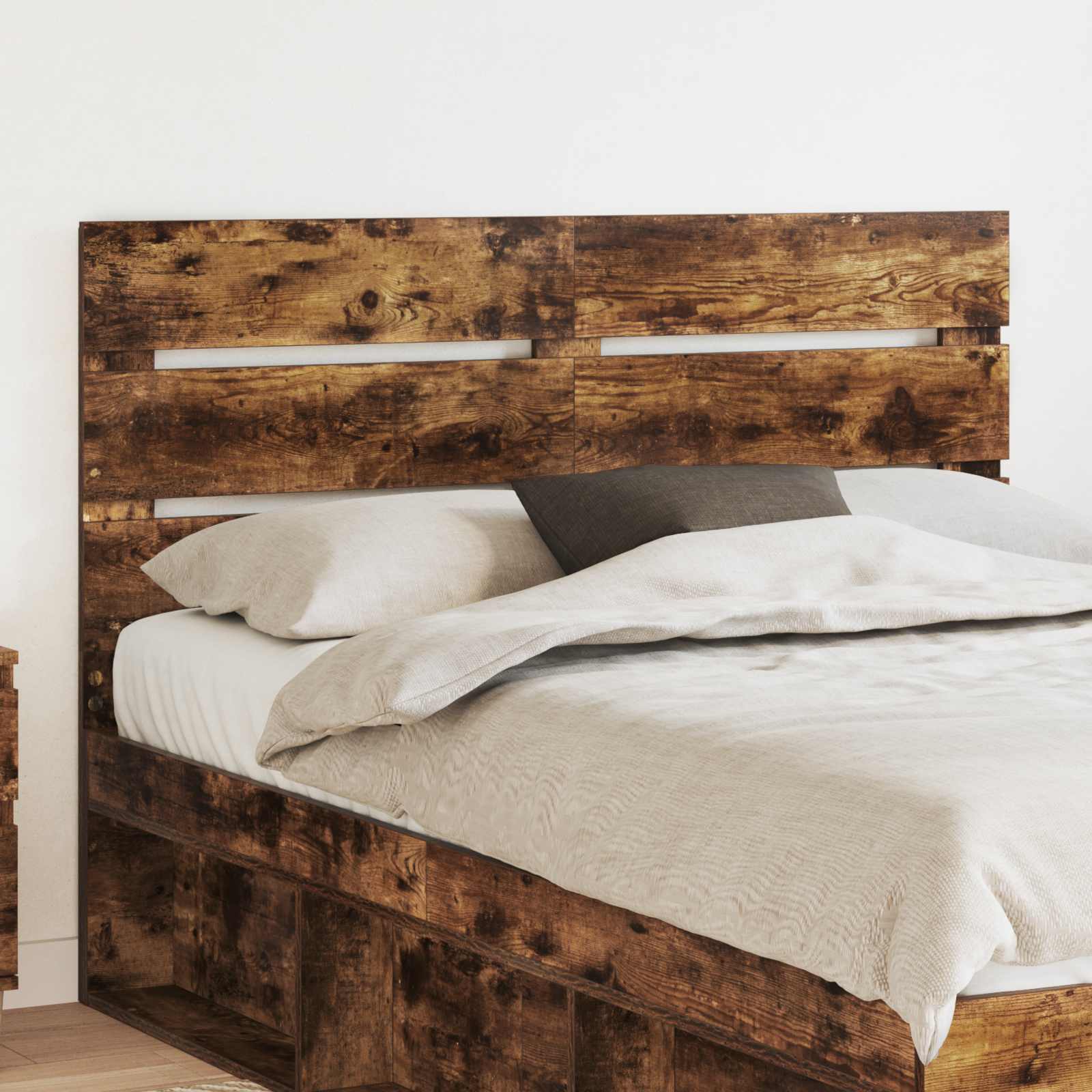 Dieses moderne Kopfteil ist ein stylisches Accessoire für jedes Schlafzimmer. Mit seinem schlanken, minimalistischen Design passt es perfekt zu verschiedenen Einrichtungstrends. Die klaren Linien sorgen für einen stilvollen Look, der das Gesamtbild des Raumes aufwertet. Die rechteckige Form ist super vielseitig und passt zu allen Bettgrößen und -stilen ? genau das Richtige für jeden, der seinem Schlafraum einen Hauch Eleganz verleihen möchte. Holzwerkstoff-Zusammensetzung Das Kopfteil ist aus hochwertigem Holzwerkstoff, der für Langlebigkeit und eine glatte Oberfläche sorgt. Dieses Material wurde gewählt, weil es robust ist und täglichen Gebrauch gut aushält. Der Holzwerkstoff sieht dazu modern aus, was das gesamte Kopfteil noch schöner macht. Rechteckige Form Die klassische rechteckige Form macht das Kopfteil zu einer tollen Ergänzung für jede Schlafzimmerdekoration. Die einfachen, klaren Linien passen perfekt zu verschiedenen Stilen, von modern bis traditionell ? es kann als neutraler Hintergrund oder als echter Blickfang verwendet werden. Leicht zu reinigen Die Pflege ist denkbar einfach: Ein trockenes Tuch reicht, um das Kopfteil sauber zu halten. Das ist besonders praktisch, wenn du nach pflegeleichten Möbeln suchst, um ein schönes Schlafzimmer zu gestalten. Einfache Montage Das Kopfteil lässt sich ganz unkompliziert aufbauen ? du brauchst nur zwei Personen und einen Schraubendreher. So wird die Einrichtung stressfrei und du kannst dein neues Kopfteil im Nu genießen. Modernes Design Das Kopfteil vereint modernen Stil mit einfacher Funktionalität. Mit seinem minimalistischen Look trägt es zur ruhigen und einladenden Atmosphäre deines Schlafzimmers bei.