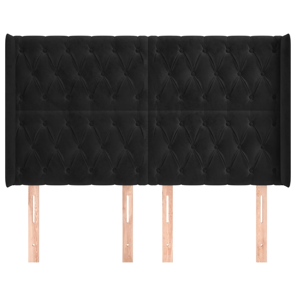Kopfteil mit Ohren Schwarz 163x16x118/128 cm Samt