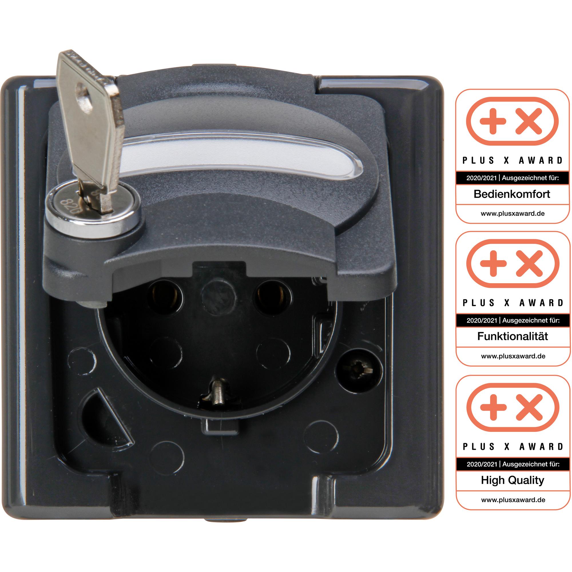 Kopp Schutzkontakt-Steckdose mit Klappdeckel und Sicherheitsschloss (Nr. 0), Blue Electric, Anthrazit (103415000)