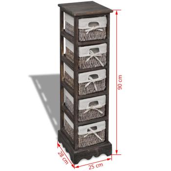 Dieses beeindruckende Schränkchen aus hochwertigem Holz verfügt über ein schlichtes und zugleich elegantes Design. Es ist eine großartige Aufbewahrungslösung und zugleich ein tolles Dekomöbel. Dieser robuste, kleine Beistellschrank mit 5 Körben bietet viel Platz zum Verstauen deiner Sachen und verleiht jedem Zimmer gleichzeitig einen Hauch von Landhausstil. Das Korb-Regal wird sicherlich eines deiner Lieblingsmöbel werden. Achtung: Um ein Umkippen zu vermeiden, sollte dieses Produkt mit der mitgelieferten Wandhalterung gesichert werden.