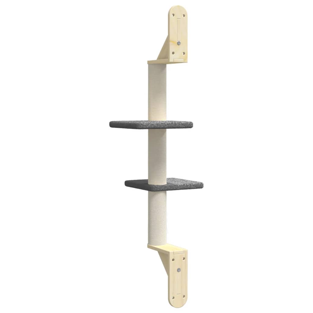 Dieser Wand-Kratzbaum bereitet deinen Katzen endlosen Spaß! Praktischer Katzenturm: Das Katzenmöbel verfügt über mehrere Liegeflächen und bietet deinen Katzen einen perfekten Platz zum Klettern, Sitzen und Entspannen. Wandmontage: Der Katzenturm lässt sich an der Wand montieren und nimmt keine Bodenfläche ein. Er eignet sich daher perfekt für kleine oder moderne Räume und spart auch Platz. Robuste Konstruktion: Der Wand-Katzenbaum ist mit stabilen, dreieckigen Halterungen versehen, um Sicherheit und Stabilität zu gewährleisten, sodass deine Katze in aller Ruhe spielen und sich ausruhen kann. Säule mit natürlichem Sisal: Die widerstandsfähige und robuste Säule ist mit natürlichem Sisal umwickelt und bietet deinen geliebten Katzen den perfekten Platz, um ihren Kratzinstinkte auszuleben, sodass Kratzer an deinen Möbeln verhindert werden.Weicher Plüsch: Mit extra dickem und weichem Plüsch bezogen, ist der Kratzbaum gut belüftet, kratzfest, sehr bequem und warm.