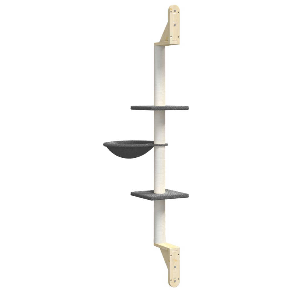 Dieser Wand-Kratzbaum bereitet deinen Katzen endlosen Spaß! Praktischer Katzenturm: Das Katzenmöbel mit mehreren Etagen besteht aus einem Korb und Liegeflächen und bietet deinen Katzen einen perfekten Platz zum Klettern, Sitzen und Entspannen. Wandmontage: Der Katzenturm lässt sich an der Wand montieren und nimmt keine Bodenfläche ein. Er eignet sich daher perfekt für kleine oder moderne Räume und spart auch Platz. Robuste Konstruktion: Der Wand-Katzenbaum ist mit stabilen, dreieckigen Halterungen versehen, um Sicherheit und Stabilität zu gewährleisten, sodass deine Katze in aller Ruhe spielen und sich ausruhen kann. Säule mit natürlichem Sisal: Die widerstandsfähige und robuste Säule ist mit natürlichem Sisal umwickelt und bietet deinen geliebten Katzen den perfekten Platz, um ihren Kratzinstinkte auszuleben, sodass Kratzer an deinen Möbeln verhindert werden.Weicher Plüsch: Mit extra dickem und weichem Plüsch bezogen, ist der Kratzbaum gut belüftet, kratzfest, sehr bequem und warm.