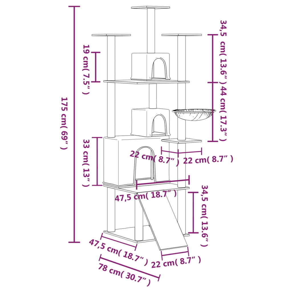 Dieser alles-in-einem-Kratzbaum bereitet deinen Katzen endlosen Spaß! Alles-in-einem-Katzenturm: Das Katzenmöbel mit mehreren Etagen besteht aus 3 Katzenhöhlen, 1 Liegemulde, 1 Leiter und Liegeflächen. Dies alles bietet deinen Katzen einen perfekten Platz zum Klettern, Sitzen, Krallenschärfen, Verstecken und Entspannen.Weicher Plüsch: Mit extra dickem und weichem Plüsch bezogen, ist der Kratzbaum gut belüftet, kratzfest, sehr bequem und warm.Säulen mit natürlichem Sisal: Die widerstandsfähigen und robusten Säulen sind mit natürlichem Sisal umwickelt und bieten deinen geliebten Katzen den perfekten Platz, um ihren Kratzinstinkte auszuleben, sodass Kratzern an deinen Möbeln verhindert werden. Hinweis:Jedes Produkt wird mit einer Montageanleitung in der Verpackung für einen einfachen Zusammenbau geliefert.