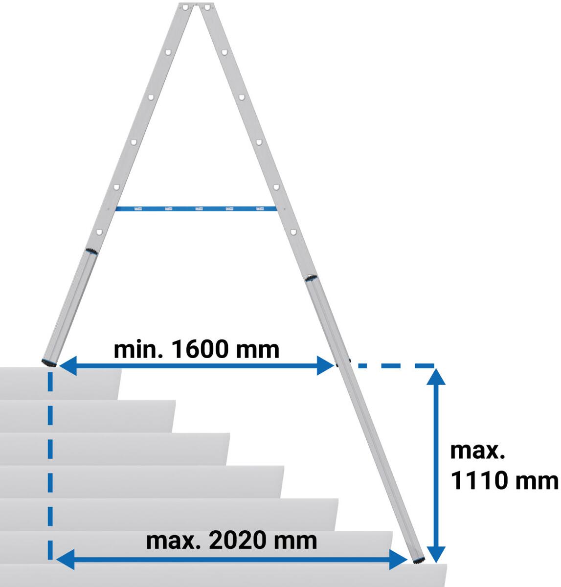 - Standsicherheit: Entwickelt für den professionellen Einsatz auf Treppen, Absätzen und Podesten.