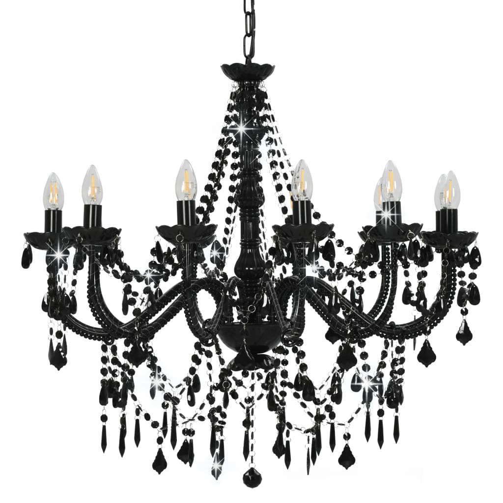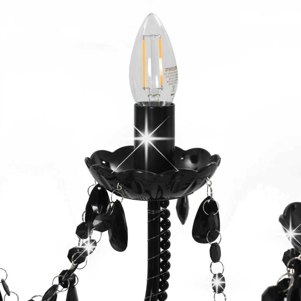 Mit einem extravaganten Design wird dieser ausgefallene Kronleuchter mit schwarzen Perlen sicherlich ein kühnes optisches Statement setzen und ein Blickfang in Ihrer Wohnungseinrichtung sein. Sie ist sowohl für den privaten als auch für den gewerblichen Gebrauch geeignet. Der kerzenartigen Lampensockel und die Tröpfchen verleihen dem Ganzen einen Hauch von antikem Charme und sorgen für schönes Licht. Sie können E14-Glühbirnen mit verschiedenen Lichtfarben auswählen, um eine Atmosphäre der Entspannung und Erholsamkeit zu schaffen. Bitte beachten Sie, dass die Leuchtmittel nicht im Lieferumfang enthalten sind. Mit den inbegriffenen Montagematerialien können Sie die Hängelampe einfach und sicher montieren und sichern.