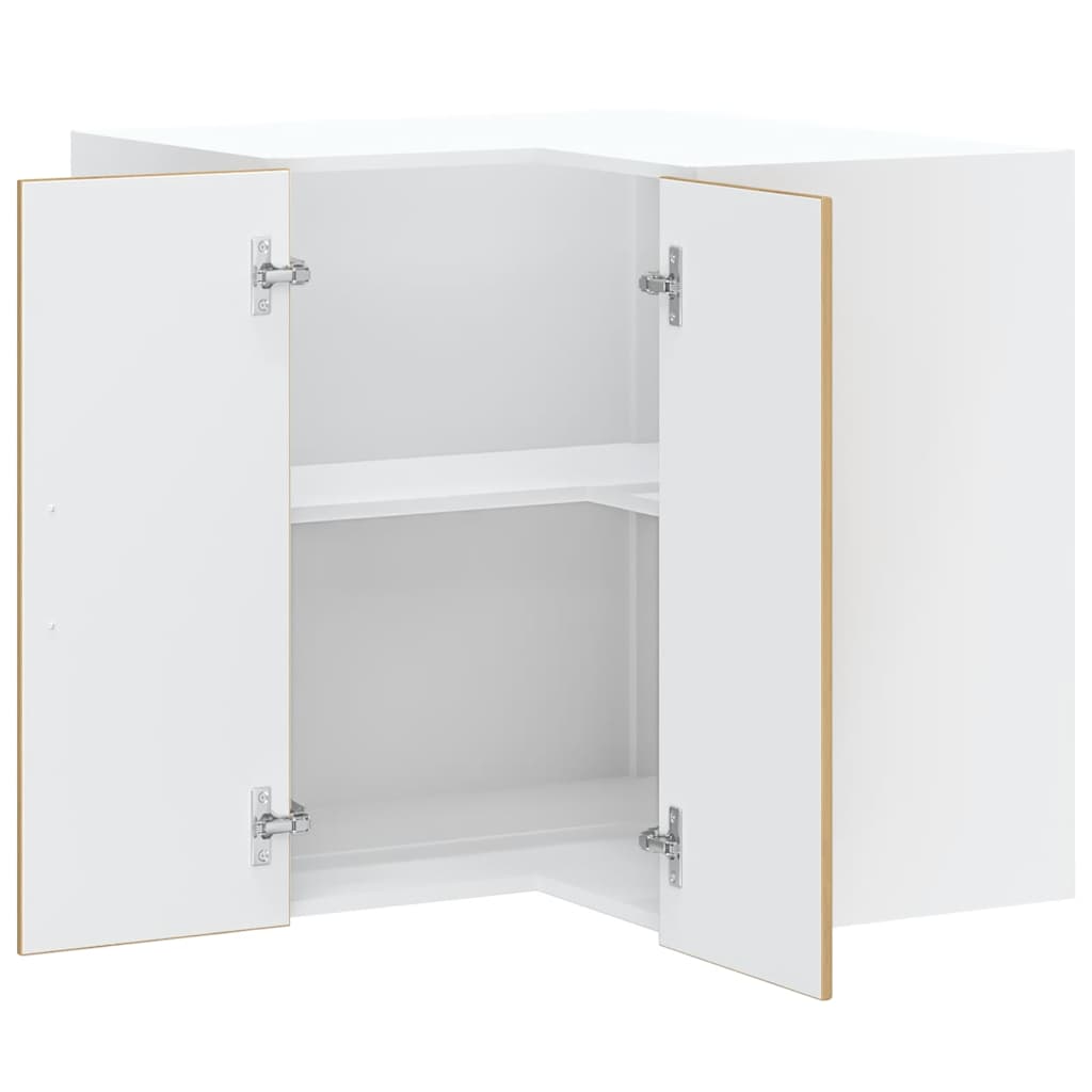 Dieser Eckhängeschrank optimiert den verfügbaren Platz in deiner Küche und stellt ein auffälliges Deko-Element in deinem Zuhause dar! Starkes und langlebiges Material: Holzwerkstoff ist ein langlebiges und robustes Material mit einer glatten Oberfläche, das gegen Feuchtigkeit, Verformung und Rissbildung beständig ist, wodurch es eine zuverlässigen Wahl für die Herstellung von Möbeln ist.Viel Stauraum: Der Eckhängeschrank bietet reichlich Stauraum für Schüssel, Teller, Töpfe und andere Küchengeräte.Wandmontage: Der Küchenschrank lässt sich an der Wand befestigen, um zusätzlichen Stauraum zu schaffen. Auf diese Weise kannst du deine Bodenfläche maximieren und für mehr Ordnung im Raum sorgen.Praktische Türen: Hinter den Türen kannst du Küchengeräte verstauen, und so einen sauberen und aufgeräumten Raum genießen.Pflegeleicht: Dank seiner glatten Oberfläche lässt sich dieser Schrank mit einem feuchten Tuch leicht reinigen und erfordert wenig Pflege. Gut zu wissen:Schrauben und Dübel für die Wandbefestigung sind nicht enthalten. Suchen und verwenden Sie die für Ihre Wände geeigneten Schrauben und Dübel. Wenn Sie unsicher sind, suchen Sie professionelle Hilfe. Lesen und befolgen Sie jeden Schritt der Anleitung sorgfältig.