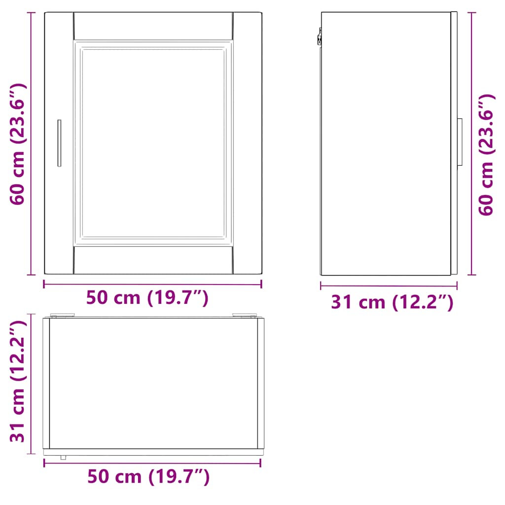 - Gesamtabmessungen: 50 x 31 x 60 cm (B x T x H)