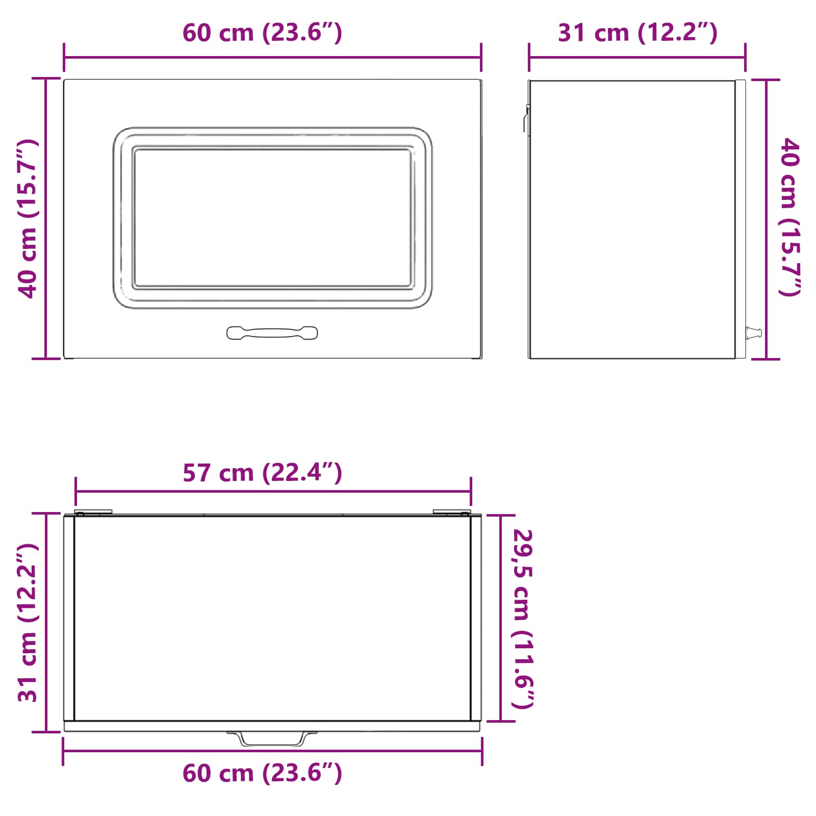 - Gesamtabmessungen: 60 x 31 x 40 cm (L x B x H)