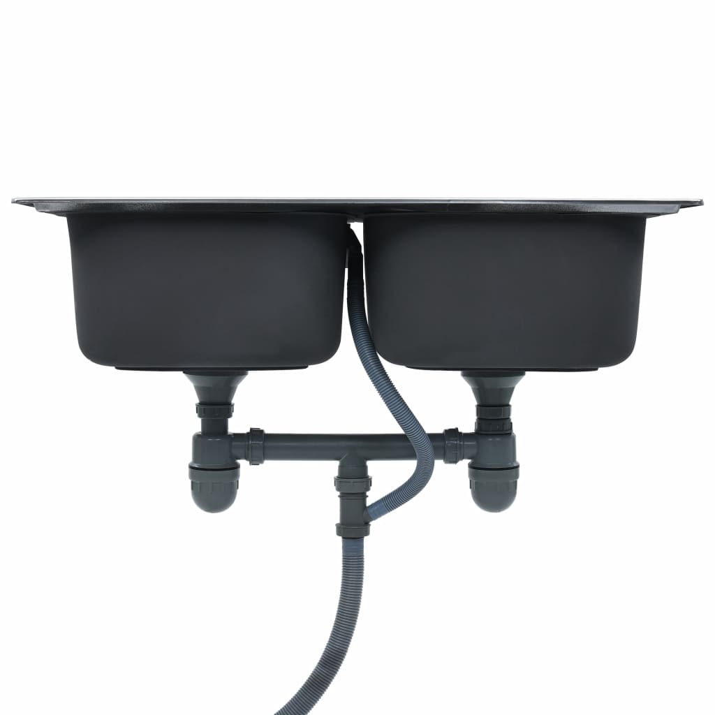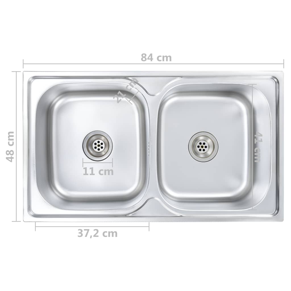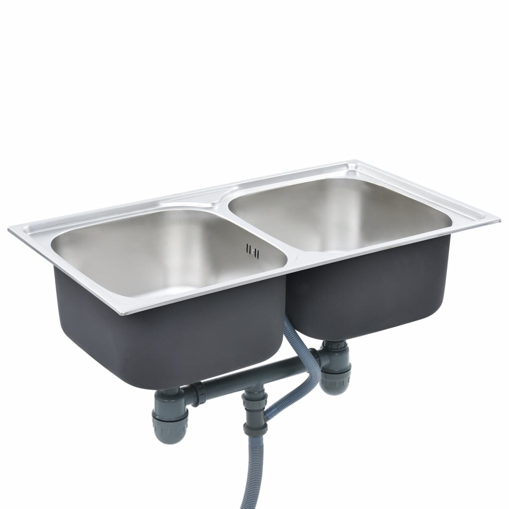 Dieses zeitgemäße, extratiefe Doppel-Spülbecken hat ein klares, elegantes Design und ist eine vielseitige Ergänzung für Ihre Küche. Dieses Spülbecken aus hochwertigem Edelstahl ist kratz- und schlagfest und äußerst langlebig. Es ist außerdem schmutzabweisend und fleckenbeständig und daher leicht zu reinigen. Dieses Spülbecken spart Platz und sorgt für mehr Ablagefläche. Die extra tiefen Becken bieten ausreichend Platz für große Pfannen und Geschirr, und die Doppelfunktion schafft einen völlig separaten Bereich, den Sie nutzen können. Die Lieferung umfasst auch das Sieb und den Siphon. Diese Spüle ist einfach zu montieren.