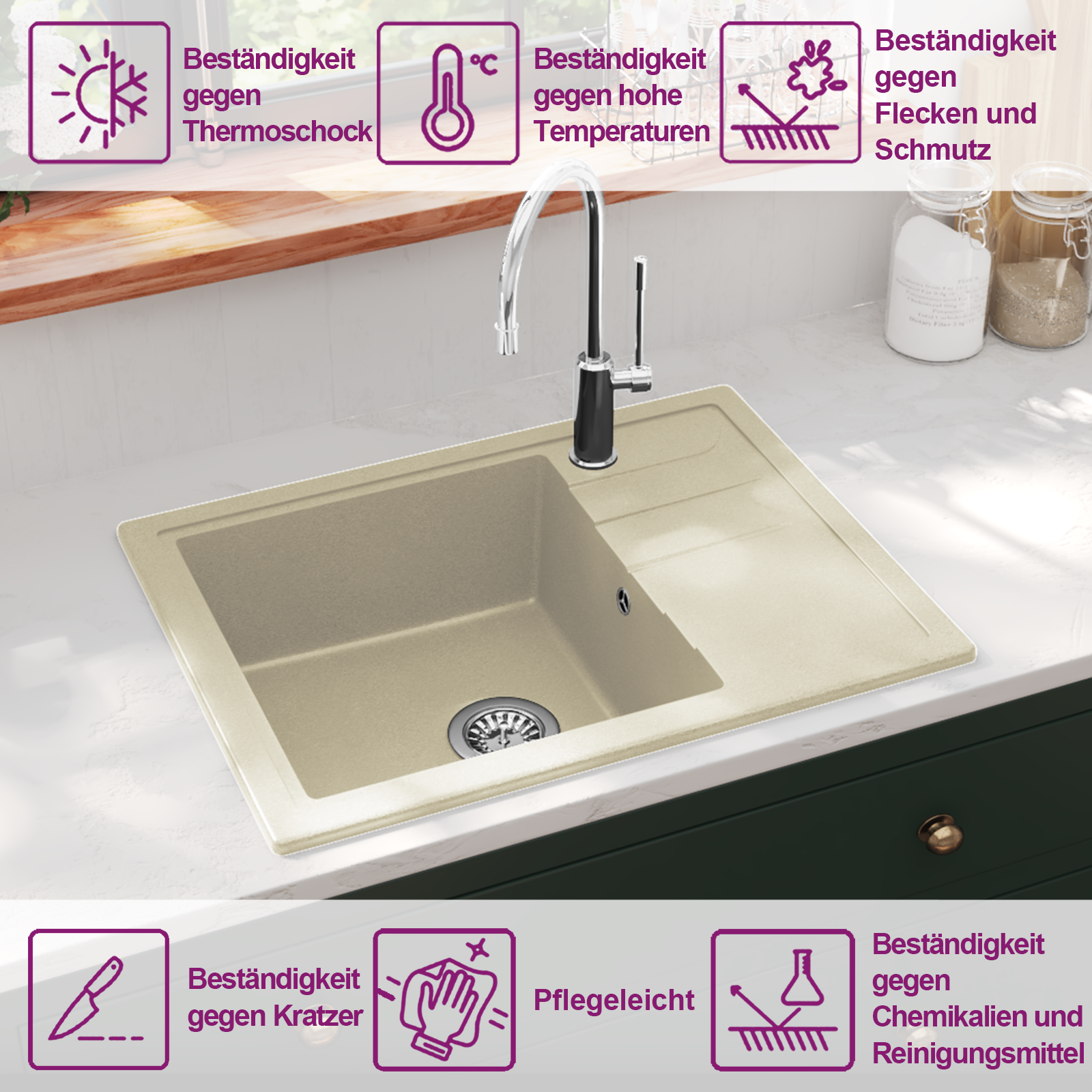- Material: 80% Quarz, 20% Harz
