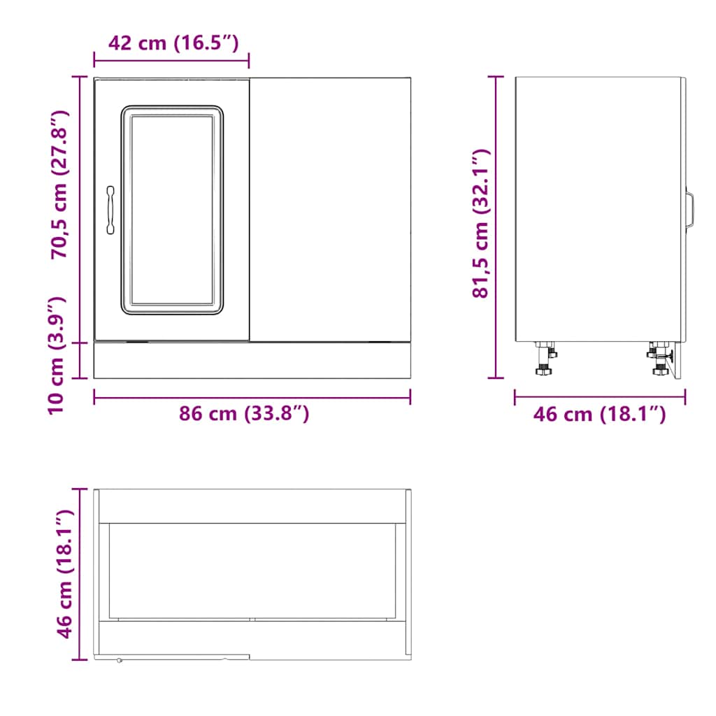 - Gesamtabmessungen: 86 x 46 x 81,5 cm (B x T x H)