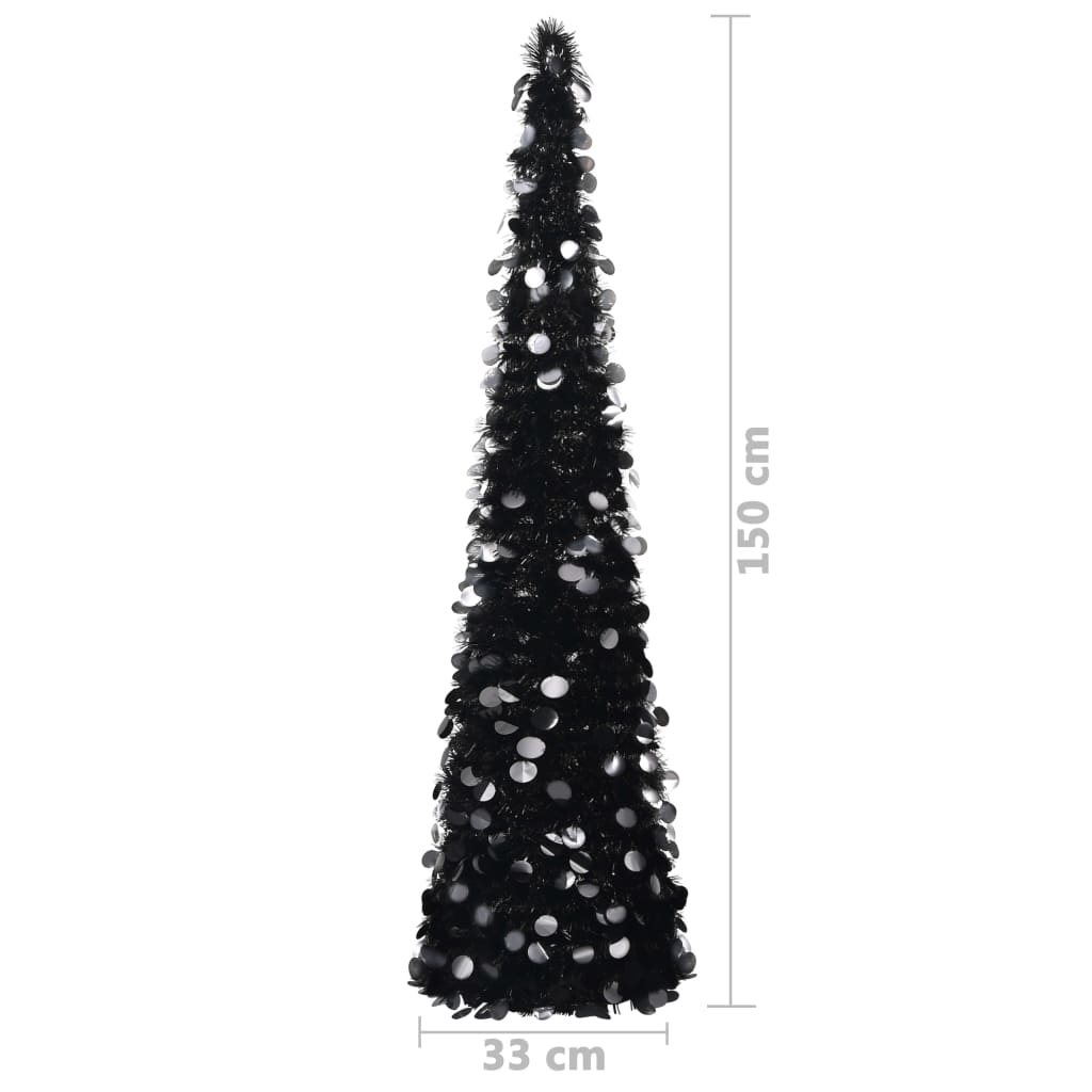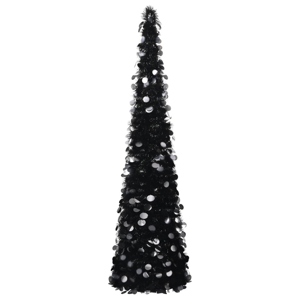Dieser glänzend schwarze Pop-up-Weihnachtsbaum schafft eine schöne und einzigartige Weihnachtsstimmung. Dieser schöne Weihnachtsbaum aus PET-Material ist leicht und lässt sich zur einfachen Aufbewahrung in eine winzige Form zusammenlegen. Die Weihnachtsdeko kann jedes Jahr wieder verwendet werden, was sie im Vergleich zu einem echten Christbaum zu einer sehr kostengünstigen Wahl macht. Er kann sowohl im Innenbereich als auch im geschützten Außenbereich verwendet werden.