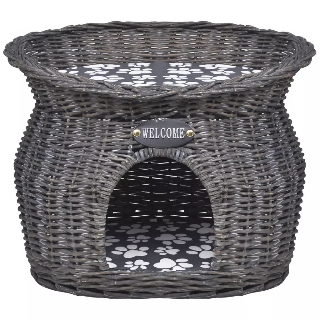 Dieses Katzenhaus bietet deinem Haustier nicht nur einen bequemen Platz zum Schlafen und Entspannen, sondern passt auch mit seinem klassischen Weidengeflecht-Design zu jedem Interieur. Es ist ein tolles Geschenk für deinen vierbeinigen Liebling oder für einen Tierfreund! Dieses extravagante Katzenbett ist aufwendig gewebt. Die mitgelieferten, dick gepolsterten weichen Kissen machen es richtig gemütlich und kuschelig. Aus Weide gefertigt, ist die Kuschelhöhle robust und dennoch leicht genug zum Mitnehmen. Das Haustierhaus kann auch draußen im Garten oder auf der Terrasse verwendet werden, um deiner Katze, deinem Kätzchen, deinem Hund oder deinem Welpe einen gemütlichen Platz zum Schlafen, Entspannen oder Spielen zu bieten. So kann dein Haustier die Sonne genießen, während es sich auf der oberen Liegefläche entspannt!