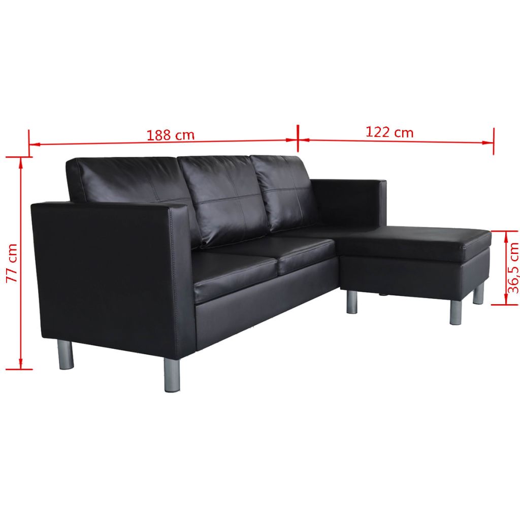 Dieses qualitativ hochwertige Sofa, bezogen mit Kunstleder, ist ein perfekter Platz zum Faulenzen, Fernsehen, oder Relaxen mit der Familie und Freunden. Dieses Sofa verfügt über breite Sitze und dick gepolsterte Kissen für höchsten Sitzkomfort. Das Sofa-Set ist mit glänzendem und strapazierfähigem Kunstleder bezogen, wodurch es einfach zu reinigen ist. Die Ecken sind stabil konstruiert und haben robuste, verchromte Eisenfüße. Dieses vielseitige Anbausofa verfügt über eine Chaiselongue, die an beiden Seiten aufgestellt werden kann, wodurch es für viele Wohnzimmereinrichtungen geeignet ist. Kinderleichter Zusammenbau. Die Lieferung umfasst 1 L-förmiges Sofa, 3 Sitzpolster und 3 Kissen.