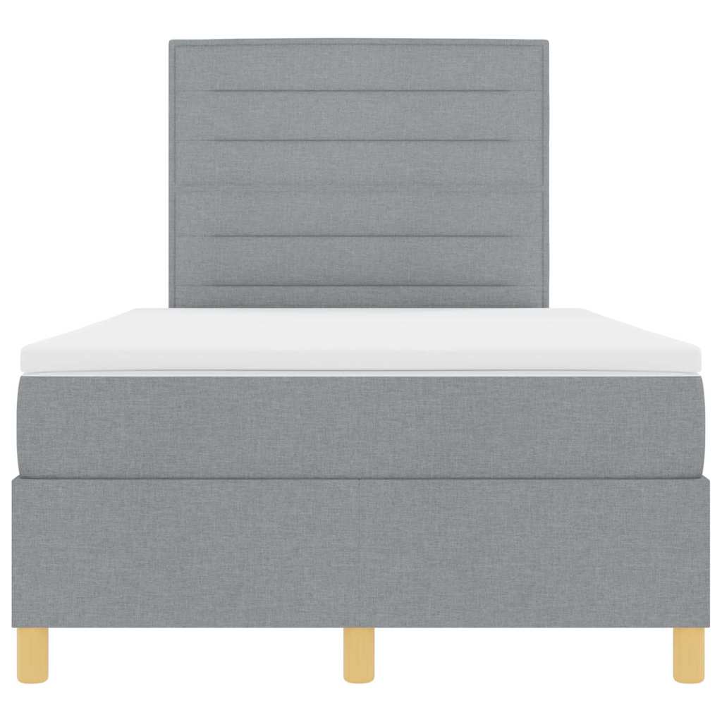 Dieses Boxspringbett kombiniert modernen Stil mit praktischem Design und verleiht deinem Schlafzimmer einen tollen Look. Der hellgraue Stoff und die Holzbeine machen es schick, perfekt für jedes Interieur. Stylisches Aussehen: Der hellgraue Stoff sieht nicht nur schick aus, sondern fühlt sich auch weich an und passt gut in moderne Schlafzimmer. Haltbarkeit und Pflege: Aus atmungsaktiven und fleckenresistenten Materialien hergestellt, ist dieses Bett leicht zu pflegen und behält seinen schicken Look und den gemütlichen Komfort. Funktionale Verwendung: Ob als Kopfteil oder einfach als Bett, du kannst dieses Stück vielseitig einsetzen und verschiedenen Bedürfnissen gerecht werden. Smart Size: Mit 120 x 200 cm passt es perfekt in Standardbettgestelle und ist so vielseitig für die meisten Schlafzimmer. Inklusive Komponenten: Mit Matratze und Topper für besten Komfort, bereit für die Nutzung, sobald du es aufstellst.