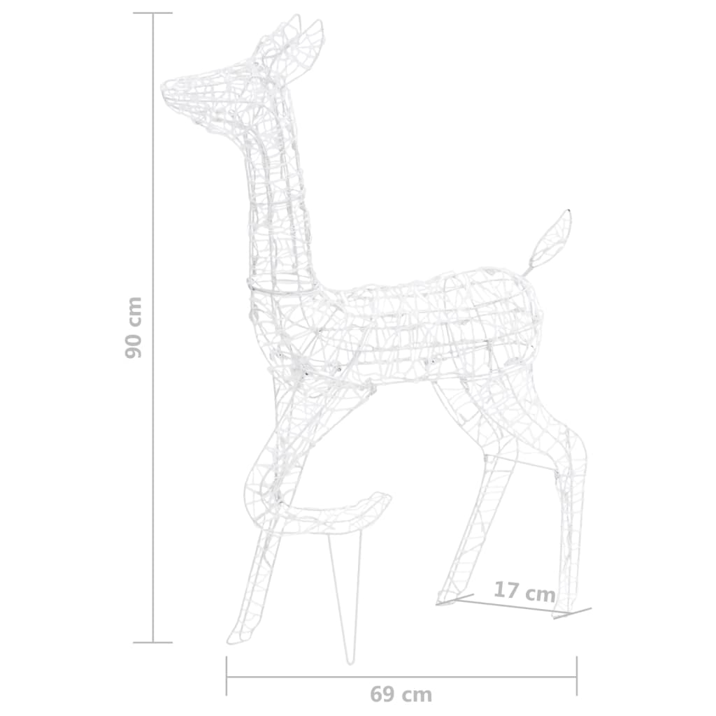 Beleuchte dein Zuhause und feiere Weihnachten mit dieser Led-Rentier-Familie. Diese Rentiere mit blauer Beleuchtung bringen die wahre Schönheit des Weihnachtsfestes zum Strahlen! Diese aus Acryl gefertigte Weihnachtsdekoration bietet einen luxuriösen, eisigen und glänzenden Look, der die Umgebung erhellt. Sie ist mit 160 LED-Lichtern ausgestattet, die energiesparend und langlebig sind. Sie verfügt über 8 verschiedene Lichteffekte: eine Kombination aus allen Effekten, langsames Glühen, Blinken/Blinken, in Wellenform, jagendes/laufendes Wasser, sequentiell, gleichmäßiges Leuchten und langsames Ausklingen. Sie leuchtet wunderschön und schafft eine magische Weihnachtsatmosphäre. Hinweis: Der mitgelieferte USB ist nicht wasserdicht, daher muss dieses Teil vor Wasser geschützt werden, aber dank des 5 m langen Kabels kann die Weihnachtsdekoration im Freien verwendet werden, da Kabel und Produkt wasserdicht sind. Das Produkt verfügt über einen USB-Anschluss, aber die zertifizierte 5-V-USB-Stromquelle ist nicht im Lieferumfang enthalten.