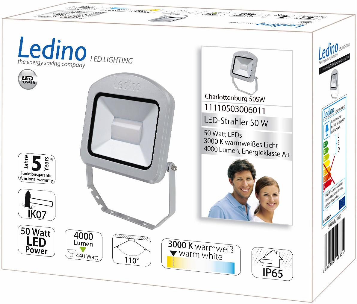 - Ledino LED-Strahler 50 W "Charlottenburg 50SW", silber
