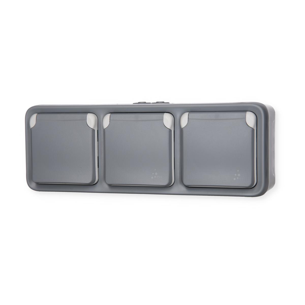 Mobile Preview: ARDEBO.de Legrand 069743 Steckdose 3-fach waagerecht IP44 Feuchtraum Aufputz Plexo grau