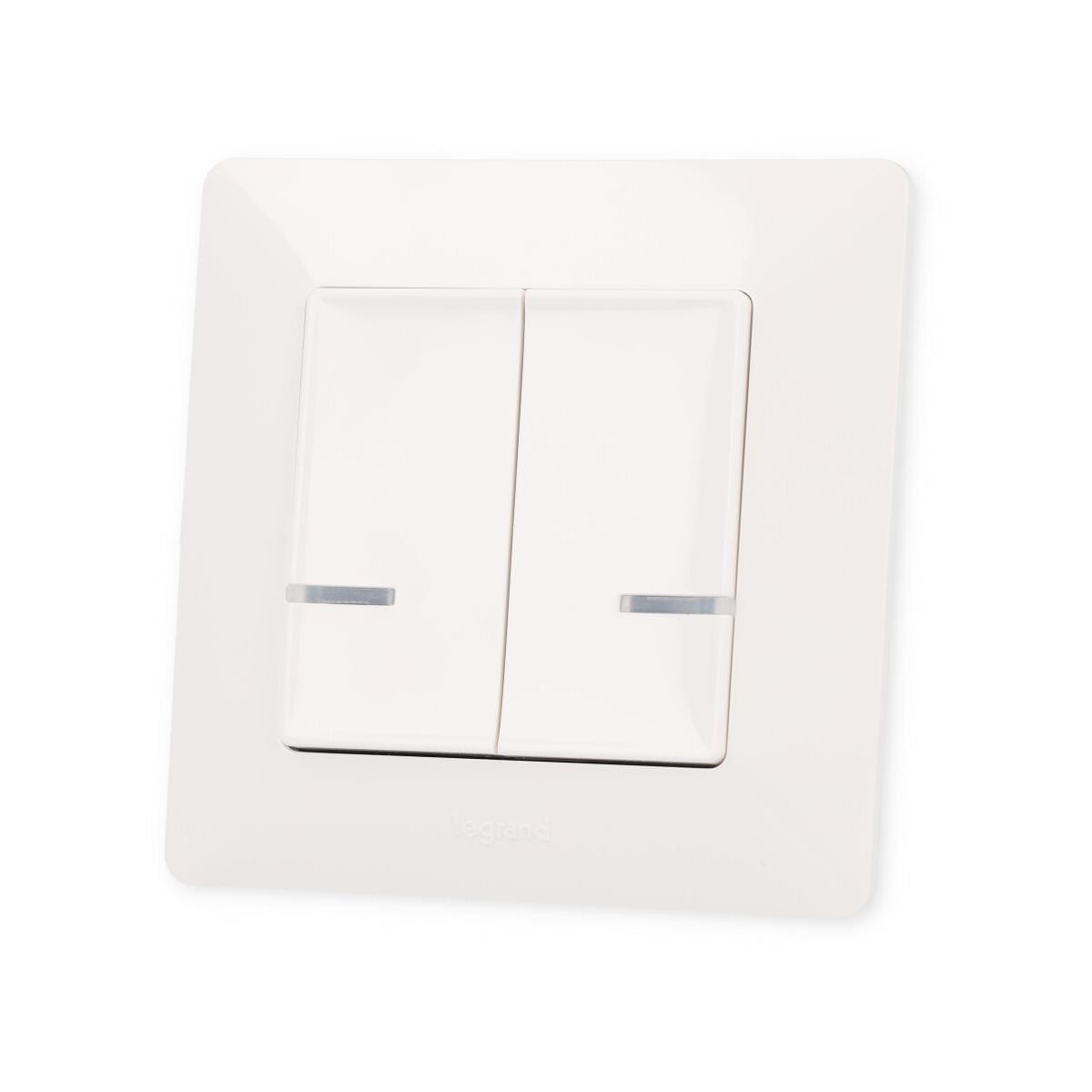 Funk-Wandsender Licht 2-fach von "Valena Life with Netatmo" - mit 2 Schaltwippen zum Steuern von Funk-Steckdosen, Funk-Mikromodulen und/oder Funk-Lichtschaltern. LED-Anzeige für Batteriestatus. Ausgestattet mit einer 3 V-Batterie CR2032 (Standby-Lebensdauer: 8 Jahre) und 4 wiederverwendbare Klebestreifen zur Befestigung des Wandsenders auf jeder Oberfläche. Dieser kann auch direkt an der Wand oder an eine Installationsdose geschraubt werden. Auslieferung komplett mit Wippe, Abdeckrahmen und Staubschutzabdeckung. Ausführung: Valena Life in der Farbe ultraweiß