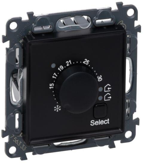 Elektronisches Raumthermostat mit Wechselkontakt zum Heizen und Kühlen. Drei Betriebsarten per Taste wählbar: Komfort, Abgesenkt, Frostschutz. Spannungsversorgung: 230 V~, 50/60 Hz Schaltausgang: 1 potentialfreier Wechselkontakt mit Schraubklemmen, Temperaturbereich: 10 bis 30 °C (+/- 0,5°C) Schaltstrom: 8 A bei cos Phi = 1; 2 A bei cos Phi = 0,6; Hinweis: Zur Verwendung mit Abdeckungen von Valena Allure. Valena Life-Artikel werden inkl.Abdeckung geliefert. Verpackt im Beutel. Farbe: Schwarz